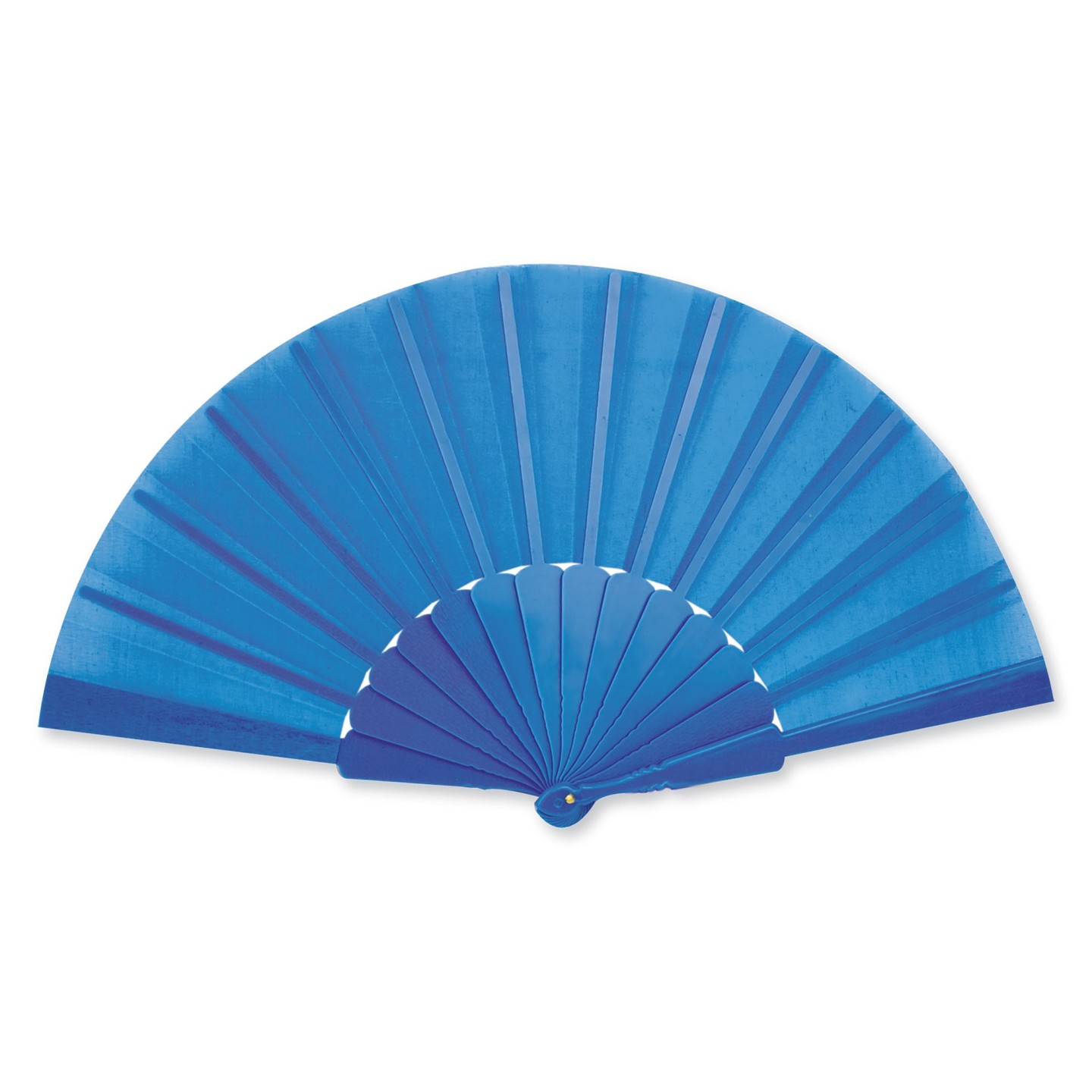 Abanico económico disponible en varios colores, perfecto para cualquier evento o promoción. Presentado en elegante caja plateada. Personalizable con logotipo