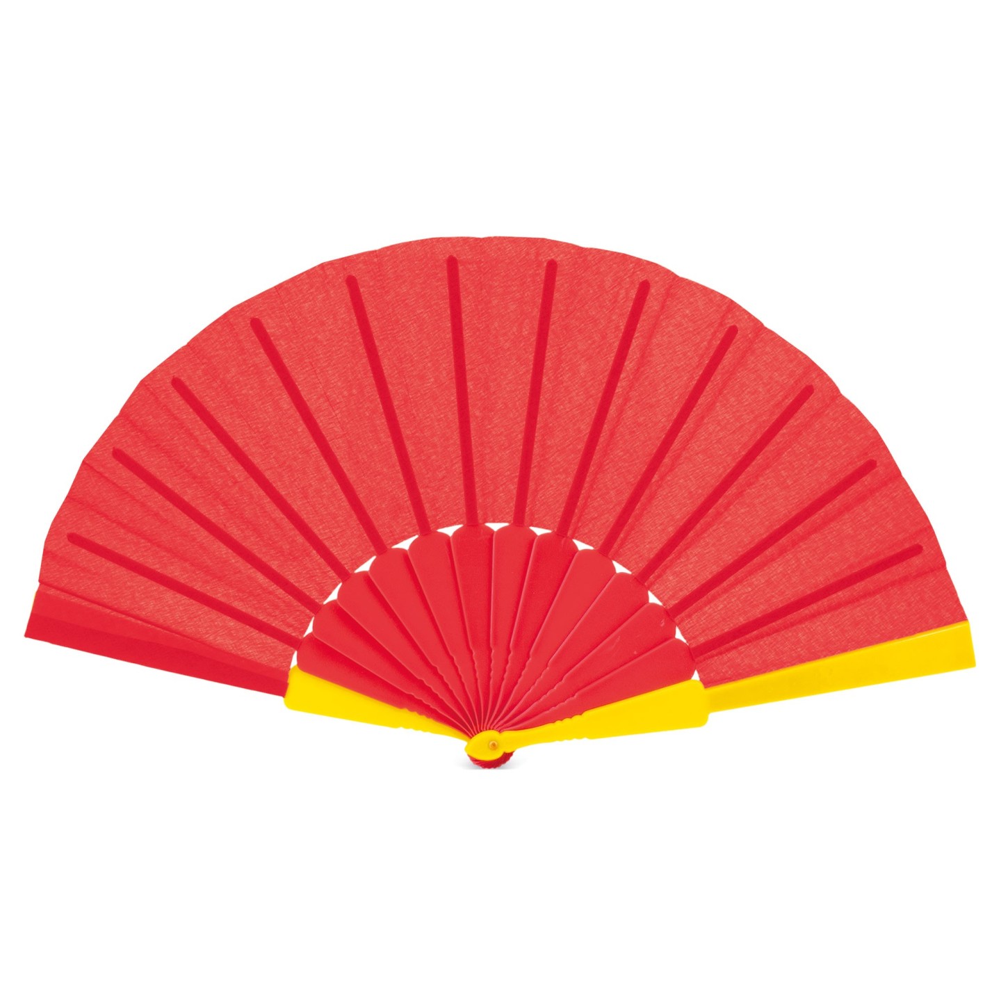 Abanico con diseño de la bandera de España, fabricado en plástico. Ideal para eventos, promociones y personalización con tu logotipo para destacar tu marca