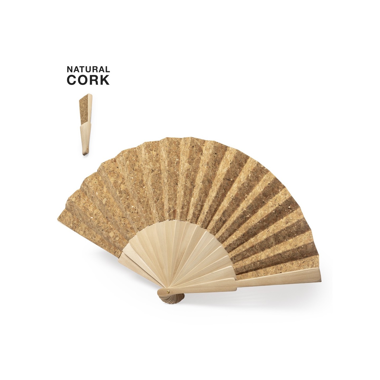 Refresca con estilo usando nuestro Abanico Kasol de diseño eco: varillas de madera, tela de corcho natural y presentado en una caja individual.