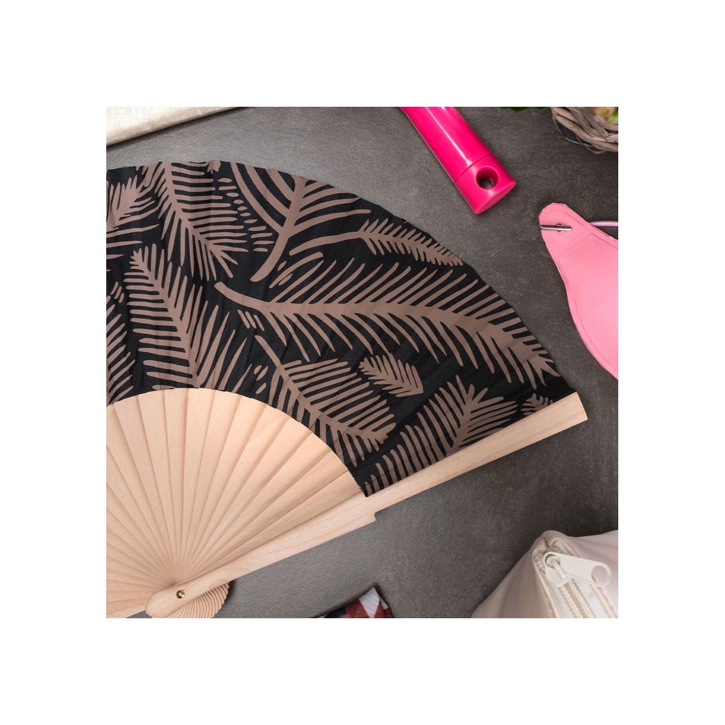 En nuestra tienda, nos enorgullece ofrecer productos excepcionales, y el "Abanico Leaves Montado" es un ejemplo de la fusión entre calidad y diseño. La combinación de materiales naturales y textiles crea un lienzo perfecto para personalizar con el logo de tu empresa o un mensaje especial.