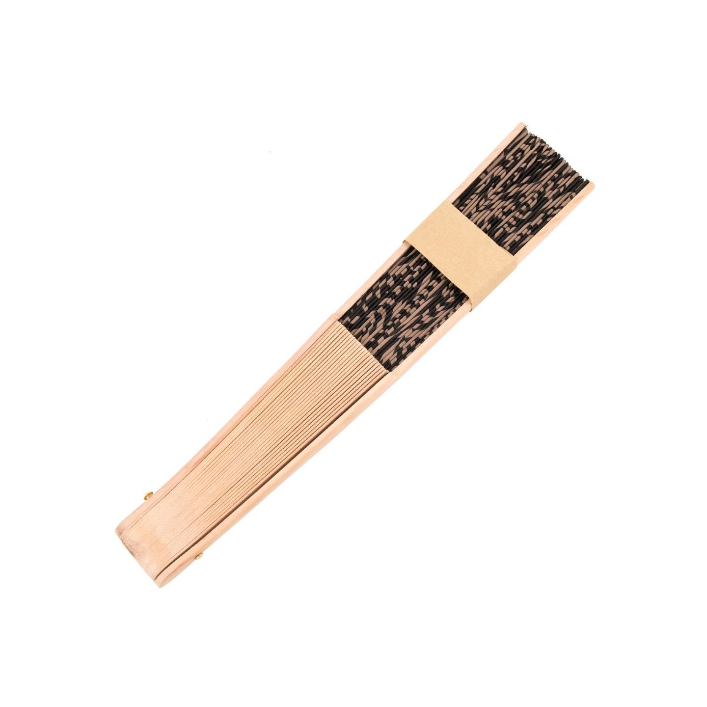 Con 23 cm de altura, este abanico es más que un accesorio; es una declaración de estilo que captura la esencia de la naturaleza. Fabricado en madera natural, cada abanico refleja la singularidad de las vetas y tonalidades, añadiendo un toque de autenticidad a cada pieza.