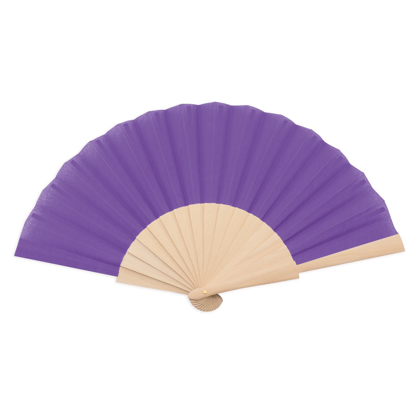 Abanico con 16 varillas de madera y país de poliéster. Nuevos colores 2025. Presentado en elegante caja plateada, ideal para eventos y promociones