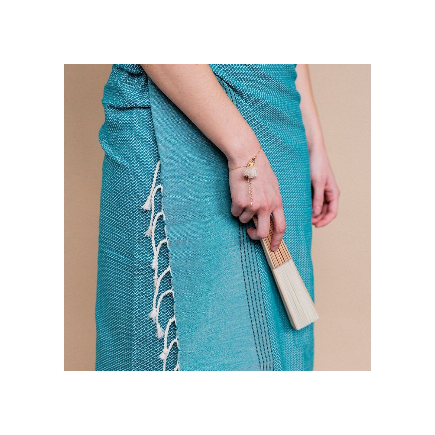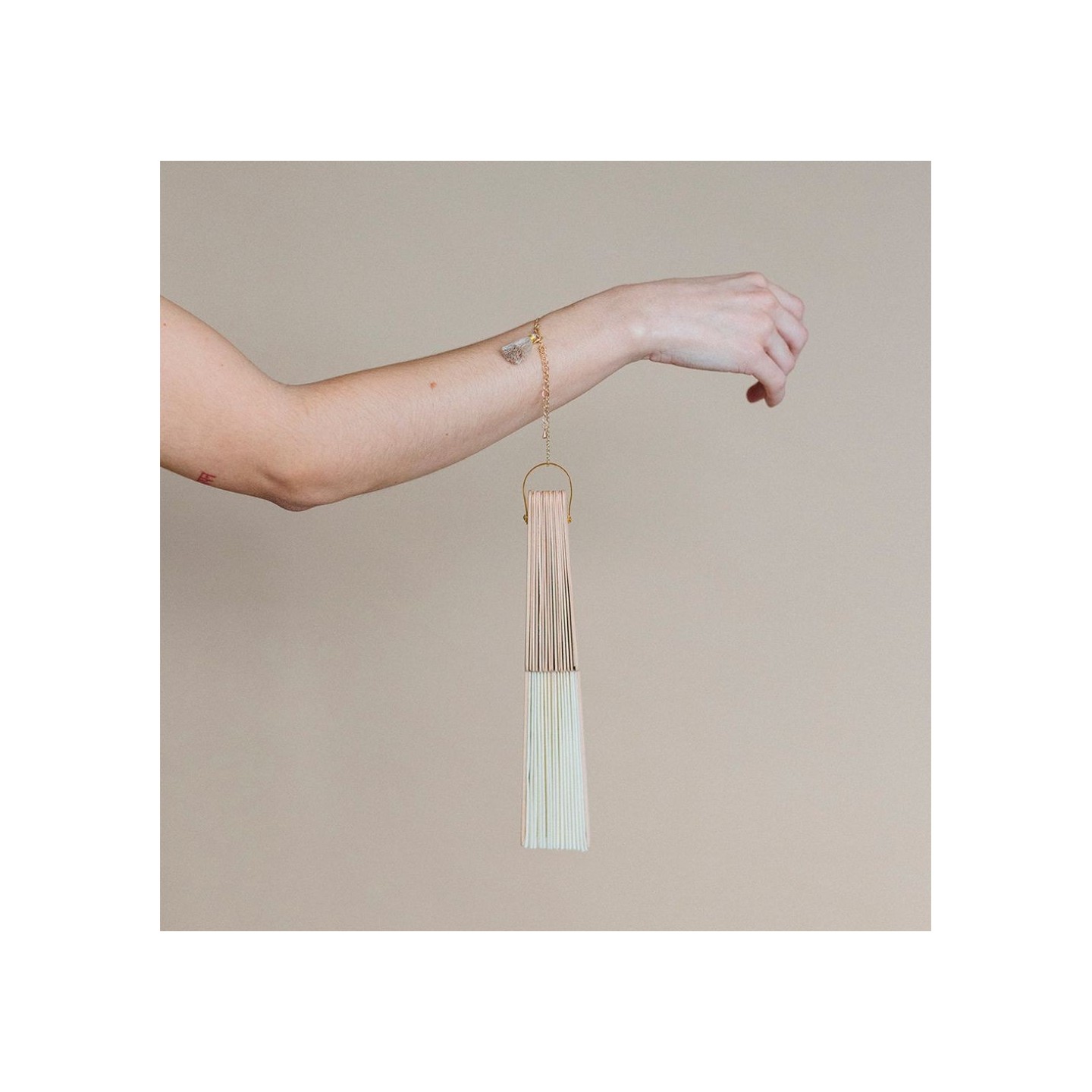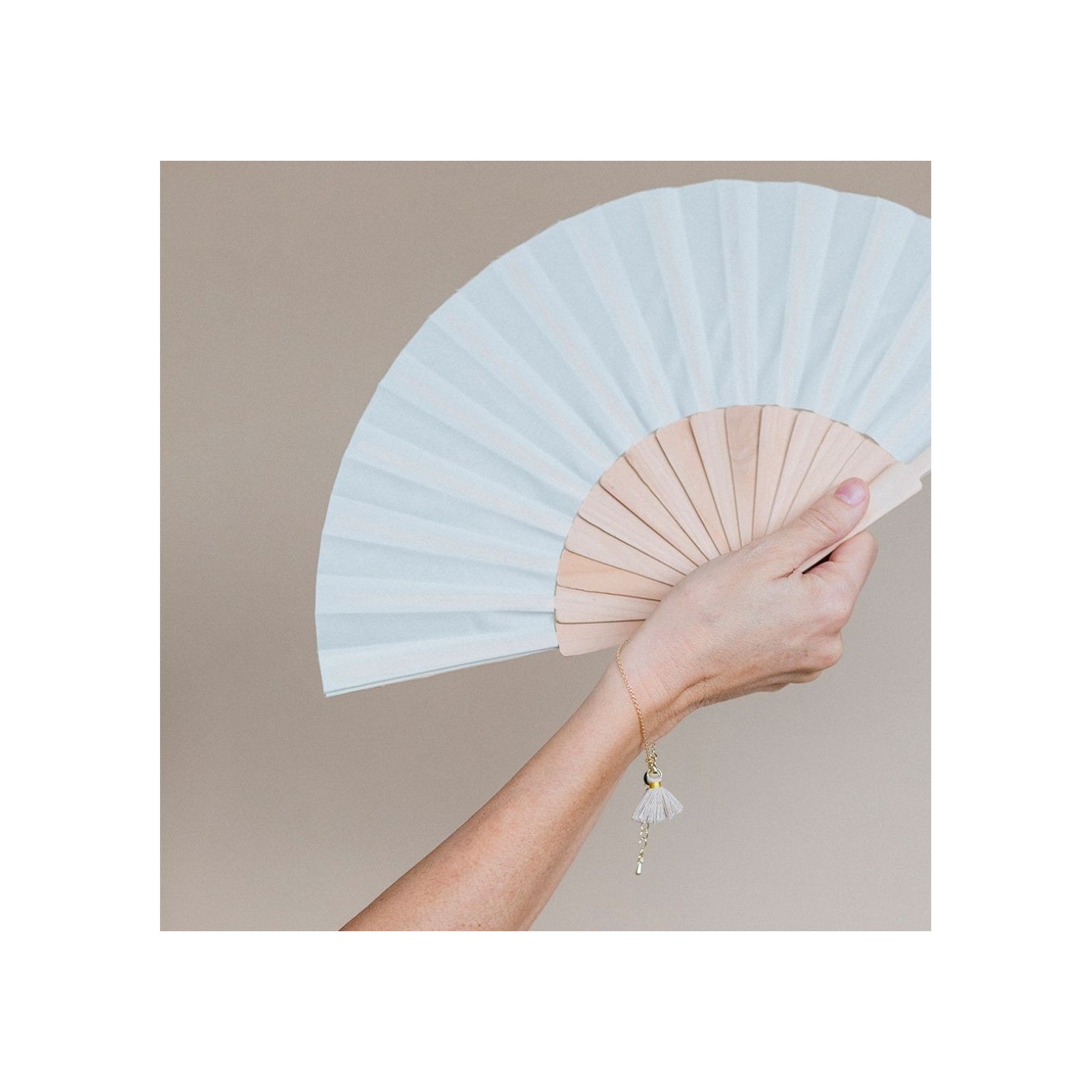 La atención al detalle se hace evidente con la pulsera que adorna el Abanico Marena. Diseñada con precisión para complementar el abanico, la pulsera no solo agrega un toque de estilo, sino que también proporciona una forma conveniente de llevar este accesorio contigo a donde quiera que vayas. Es la fusión perfecta de moda y funcionalidad.