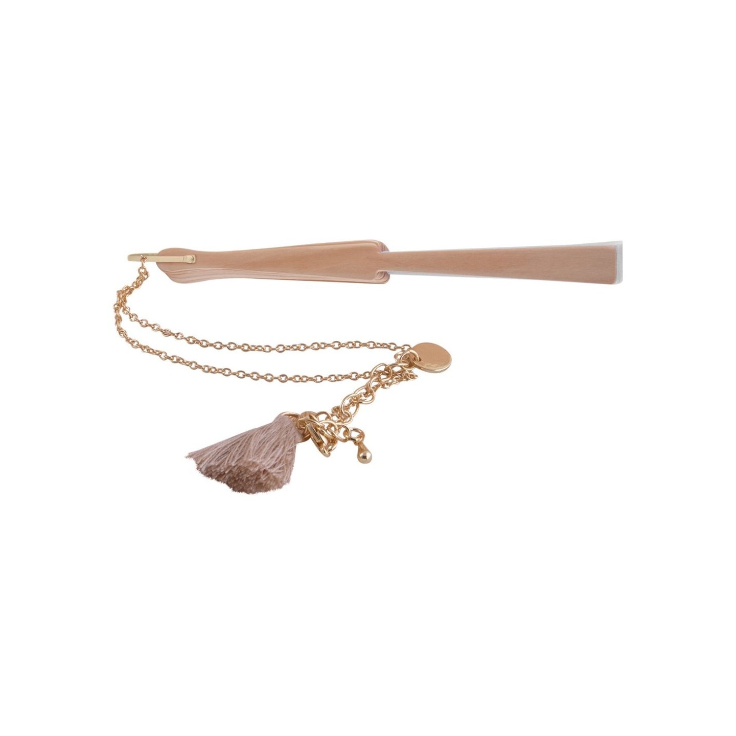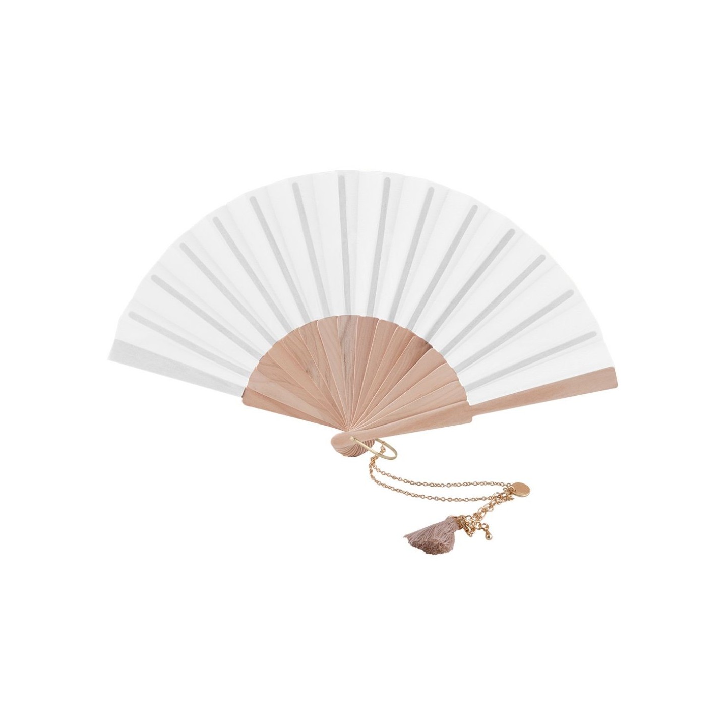 Refresca tu estilo con el Abanico Marena de 23 cm con pulsera y encanto de pompón. ¡Un regalo único y funcional para tu empresa!