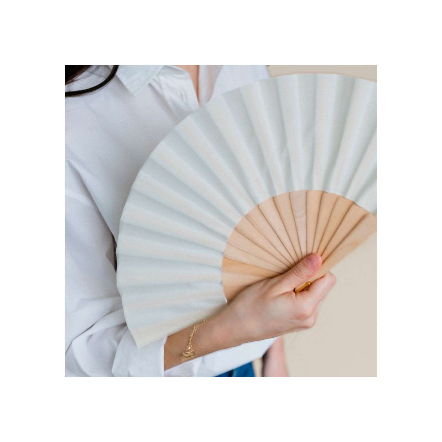 El Abanico Marena es una joya de la elegancia y la practicidad. Con una longitud de 23 cm, este abanico no solo ofrece un alivio refrescante en días cálidos, sino que también se presenta como una obra de arte en sí mismo. Cada detalle ha sido cuidadosamente pensado, desde la exquisita decoración hasta la pulsera que lo acompaña, creando una pieza que no solo cumple una función utilitaria, sino que también sirve como un accesorio de moda distintivo.