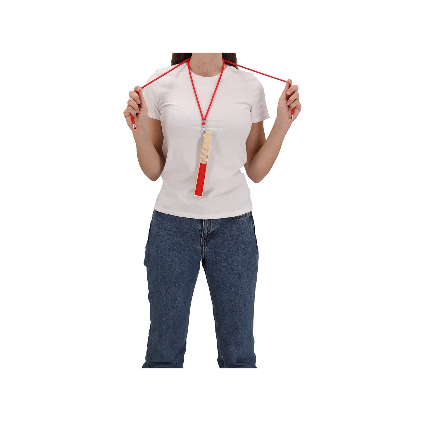 Una de las características destacadas del Abanico YANEX es su cordón ajustable, a juego con la tela, que facilita su manejo y asegura un agarre cómodo. Además, incluye un práctico mosquetón metálico para un transporte sencillo y seguro, permitiendo que puedas llevarlo cómodamente en tu bolso, mochila o incluso colgado en tu llavero.