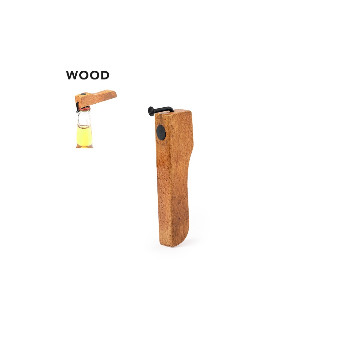Abridor magnético de botellas en madera natural, diseño industrial y prácticos imanes para sujetar la chapa. ¡Personalizable!