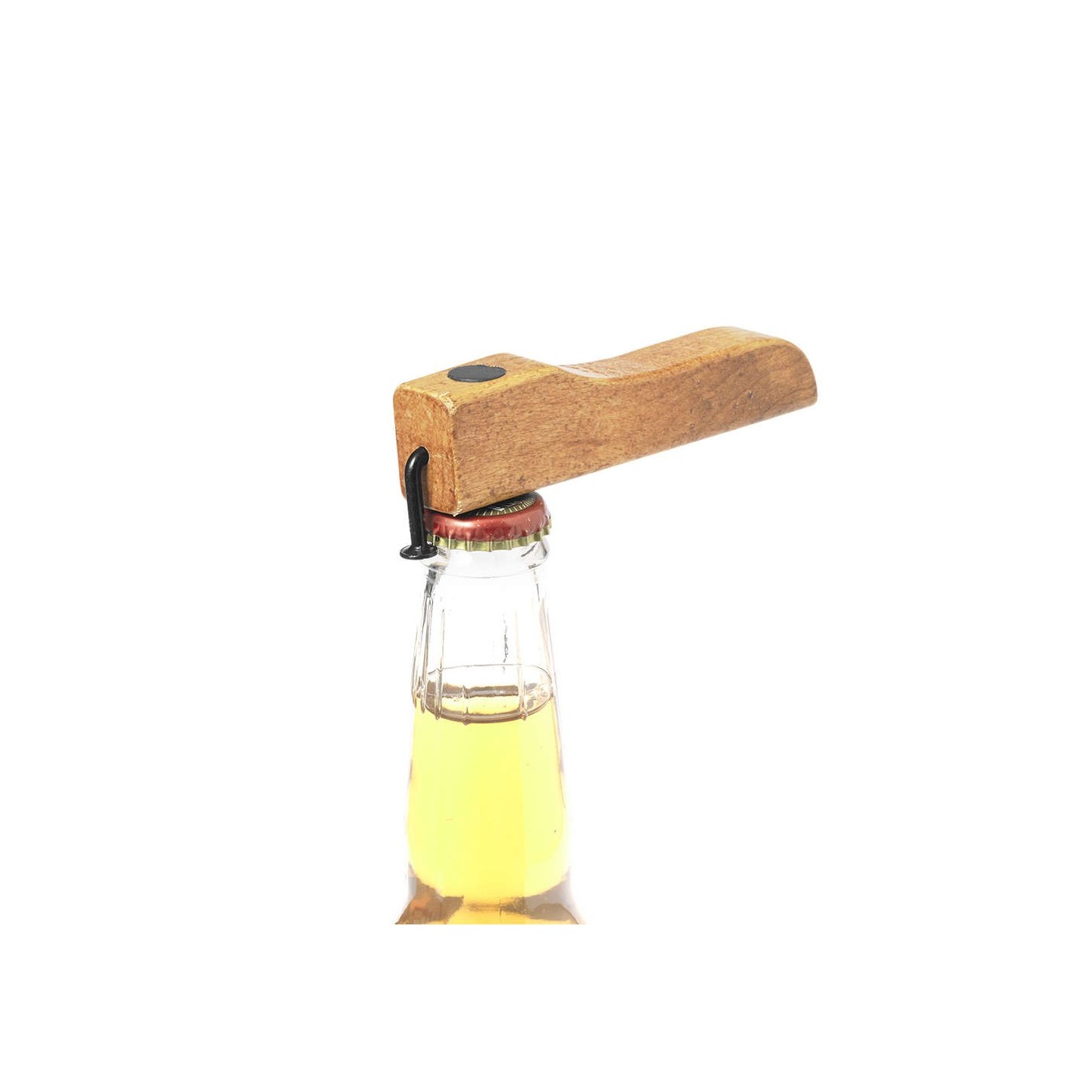 Descubre el Abridor Clasinger, una pieza única para tu colección. Este original abridor de botellas magnético combina funcionalidad y estilo. Fabricado en suave madera natural, su diseño industrial y la forma de clavo del abridor le confieren un carácter distintivo.