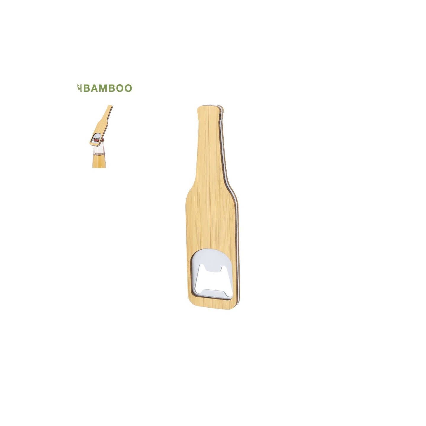 Abridor CERYON con diseño de botella en bambú y metal. Ecológico, ligero (35 gr) y funcional. Ideal para personalizar con tu logotipo y promover la sostenibilidad.