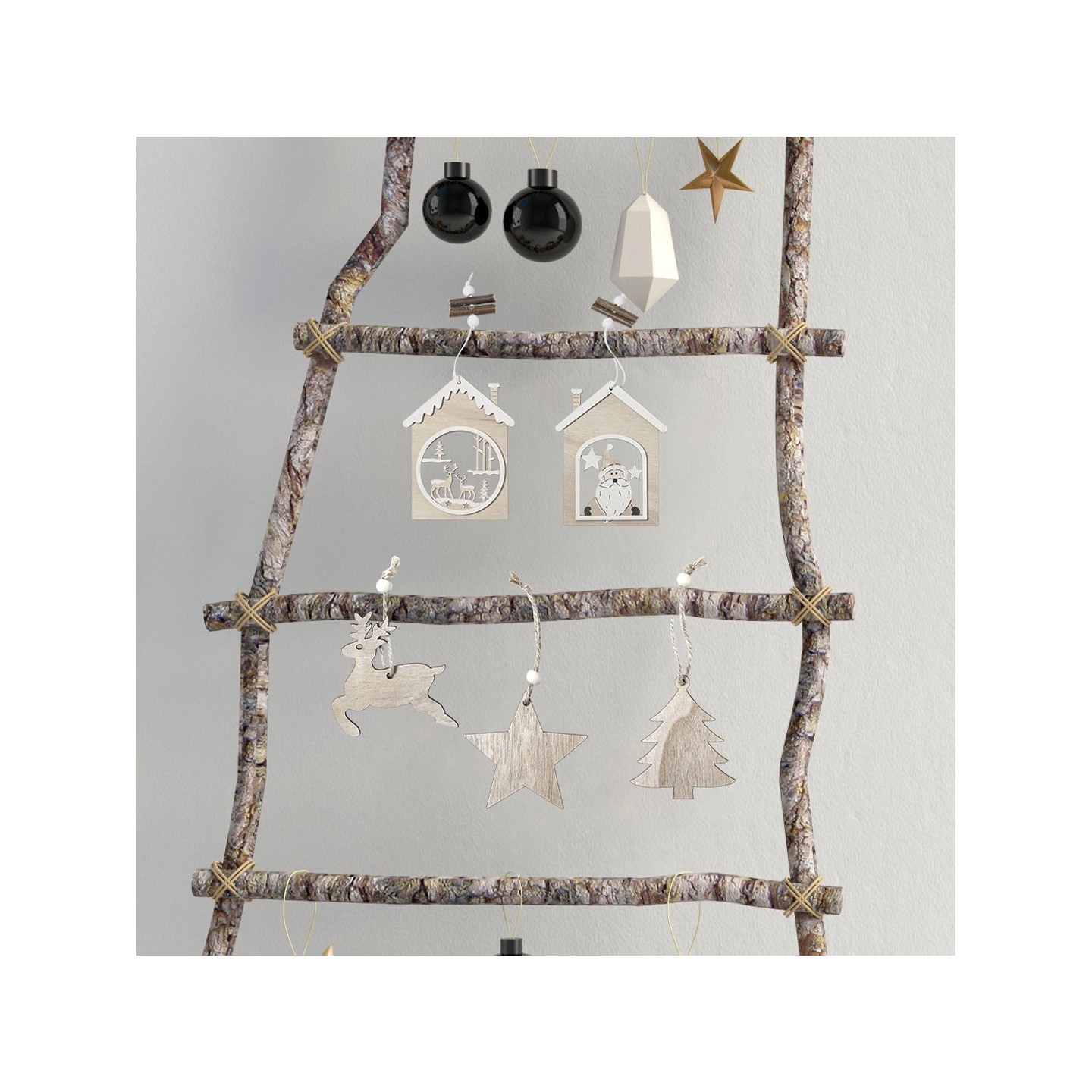 Encanto festivo con adorno navideño de diseño en madera natural