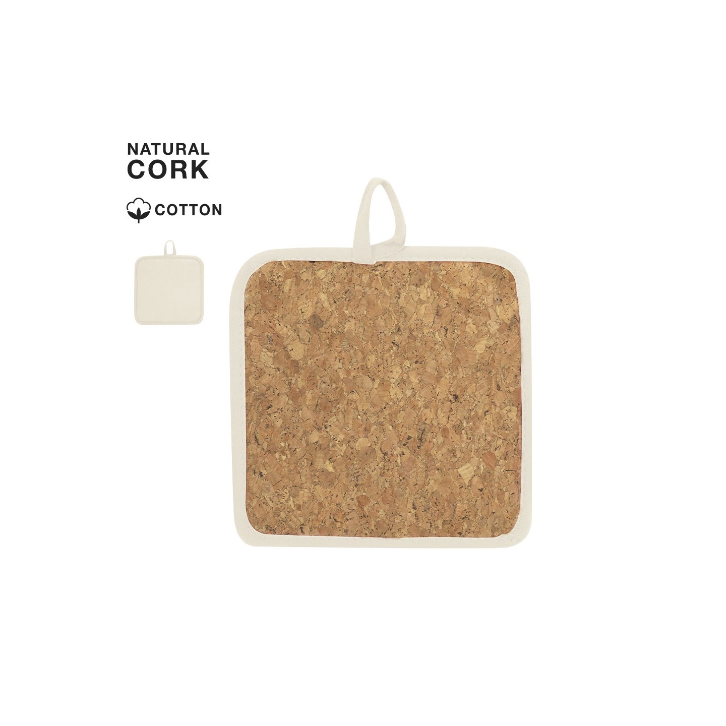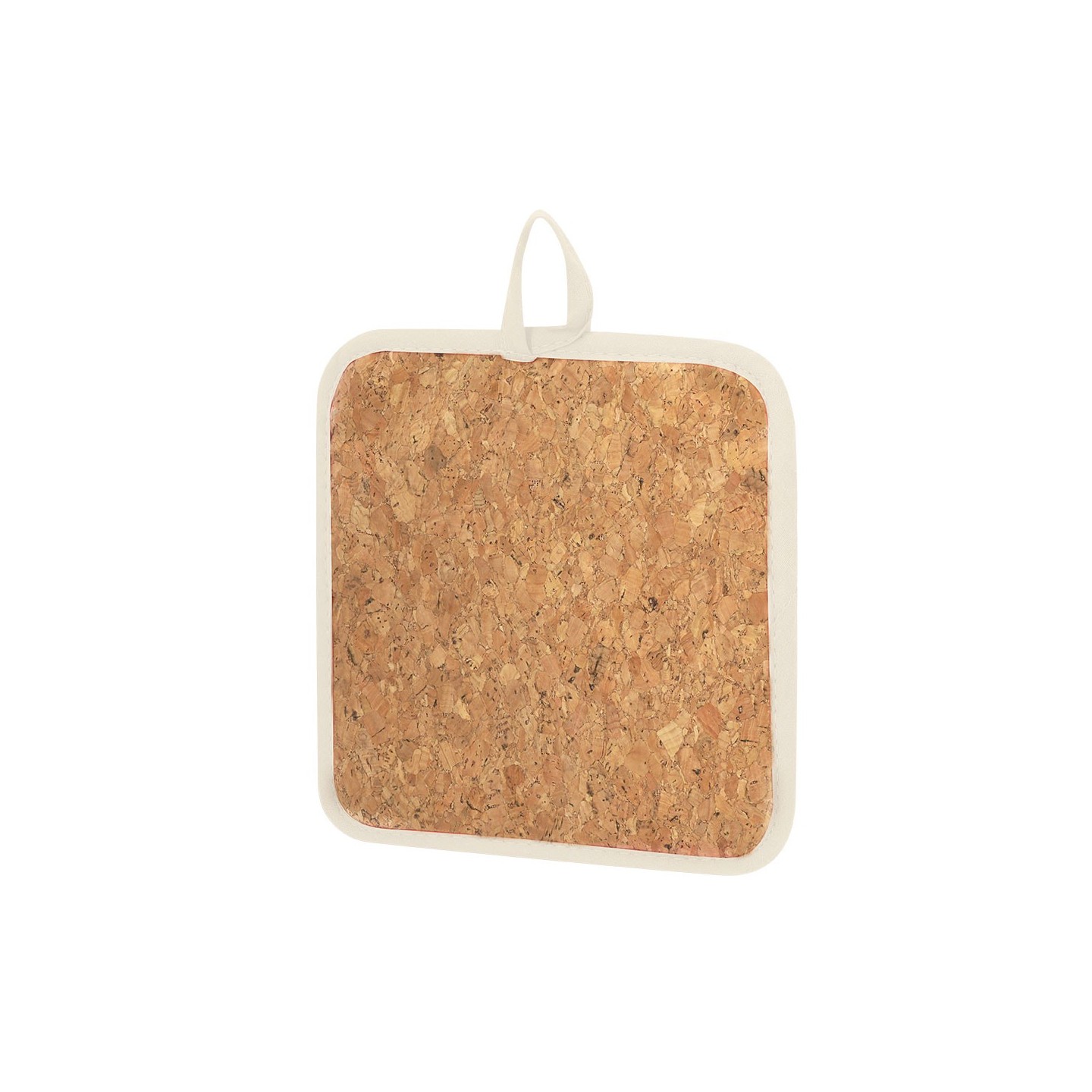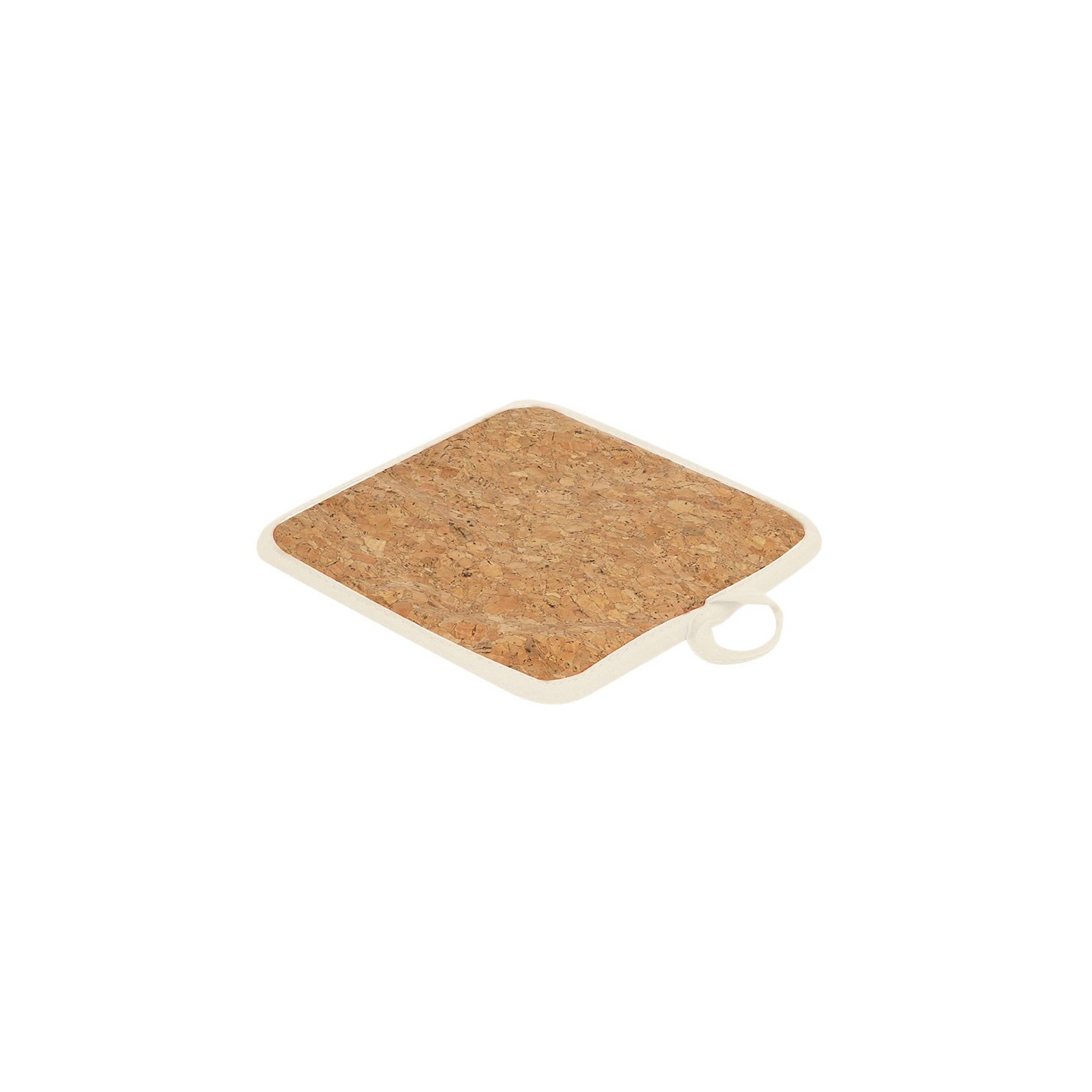 Agarrador NAYRON de cocina, hecho de algodón y corcho sostenible, con cinta para colgar. Ligero (26 gr), funcional y personalizable con tu logotipo.
