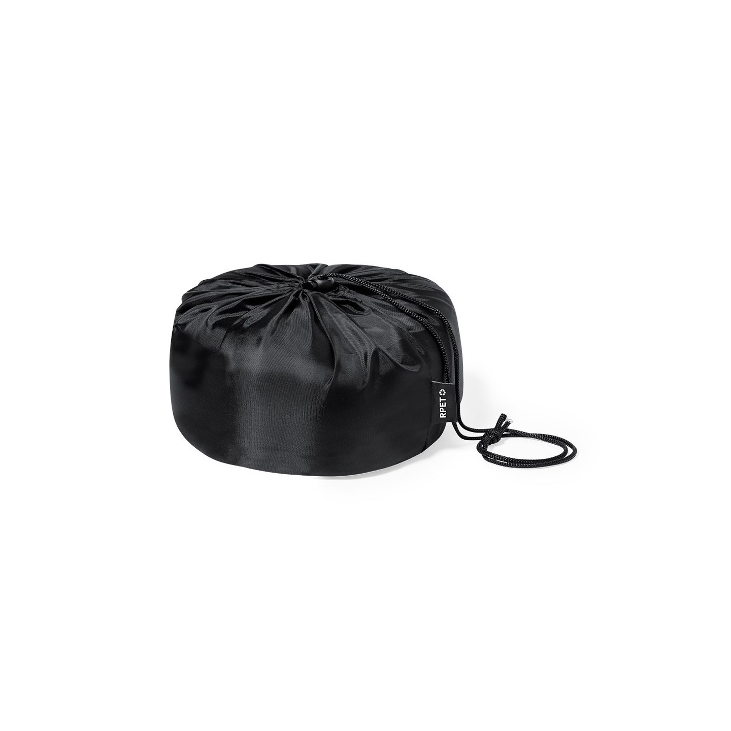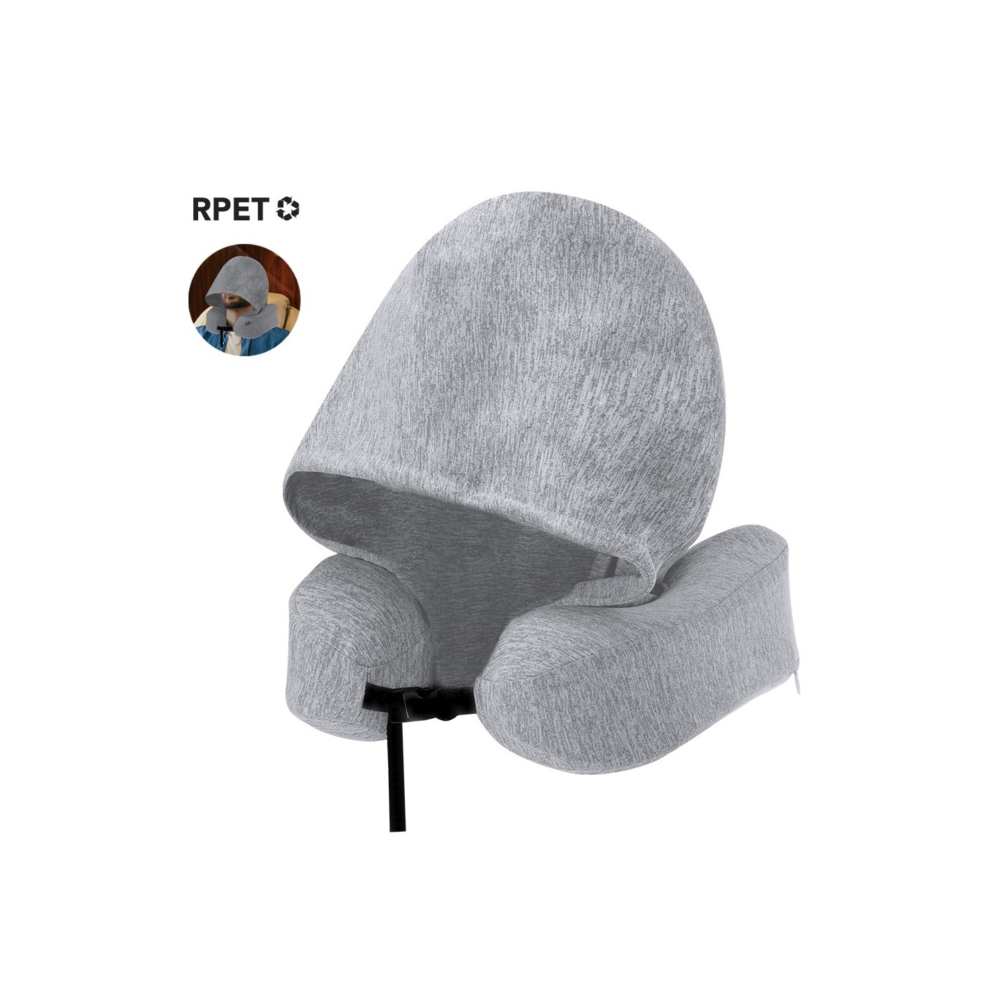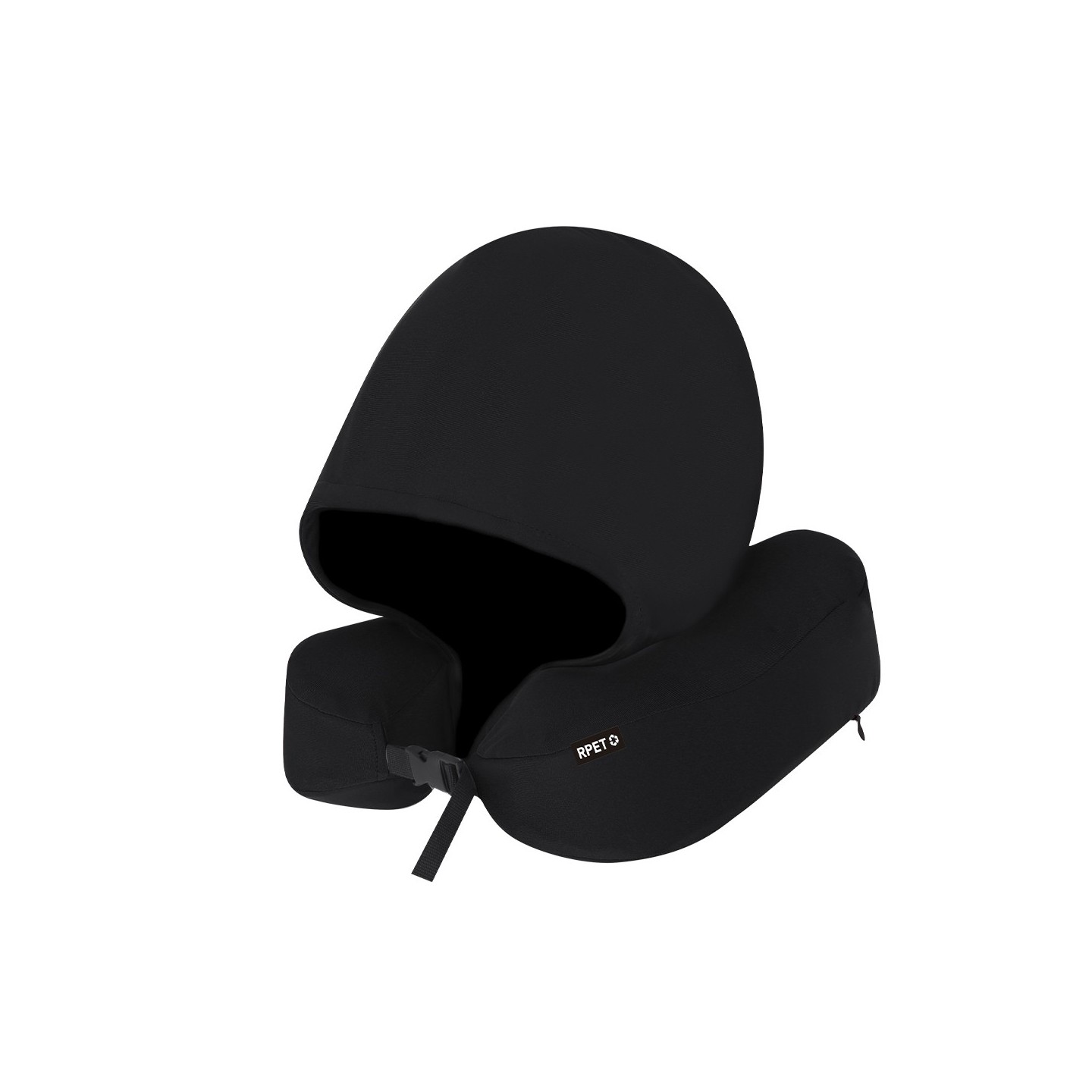 Almohadilla Capucha DOLKING, fabricada en RPET reciclado, con relleno adaptable, capucha para mayor calidez y asa de transporte. Personalizable con tu logotipo. ¡Ideal para empresas y viajes!
