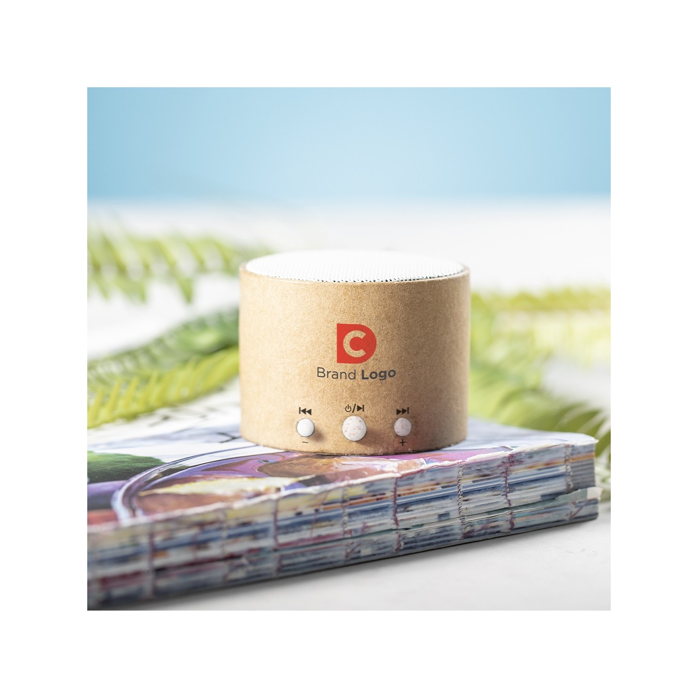 El Altavoz Crapin es un compacto altavoz Bluetooth de cartón reciclado. Potencia de 3W, conexión Bluetooth 5.0 y botones de control en caña de trigo. ¡Sostenibilidad y calidad de sonido en uno!