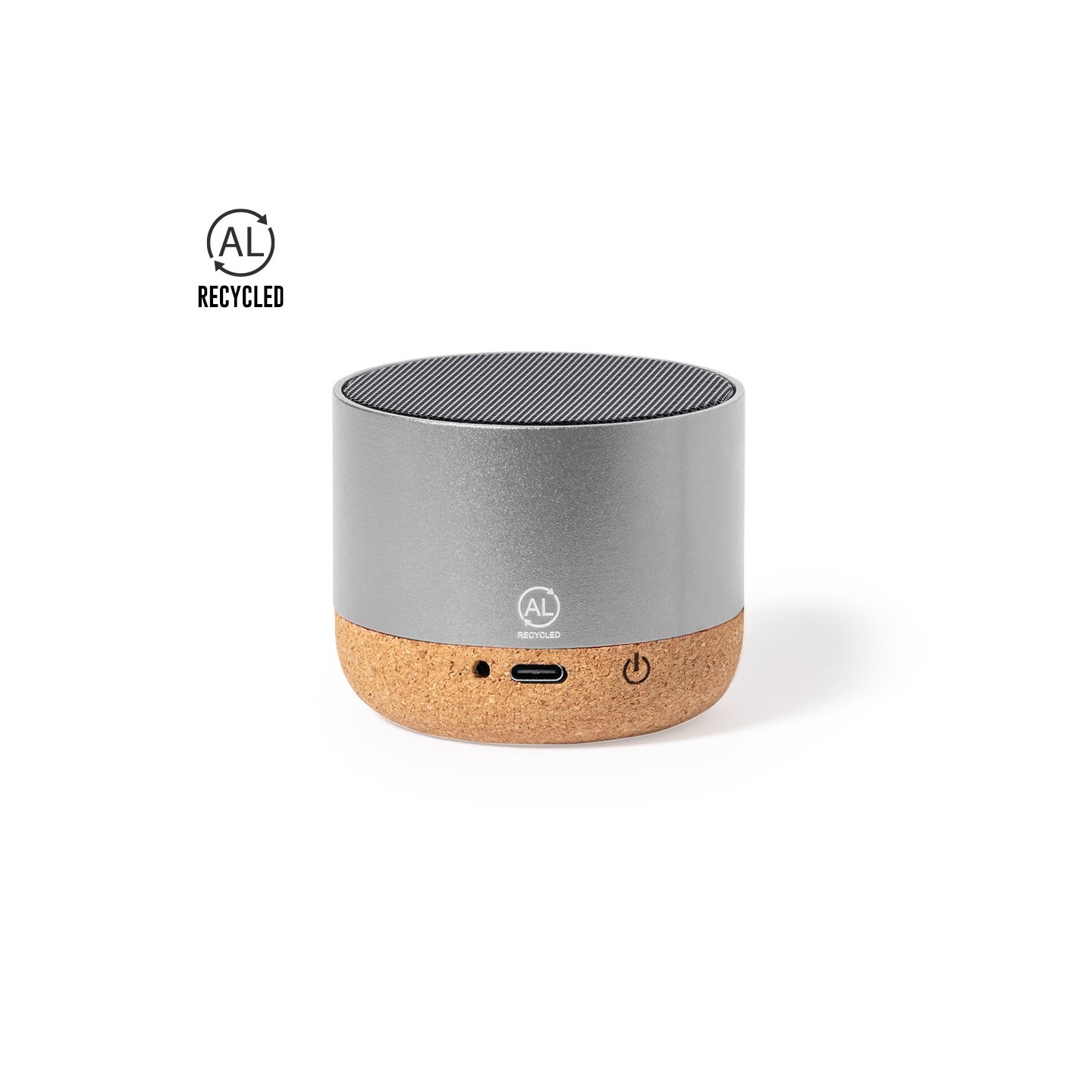El Altavoz Moore es de aluminio reciclado y corcho natural. Bluetooth® 3W. Sostenibilidad en un diseño sonoro compacto
