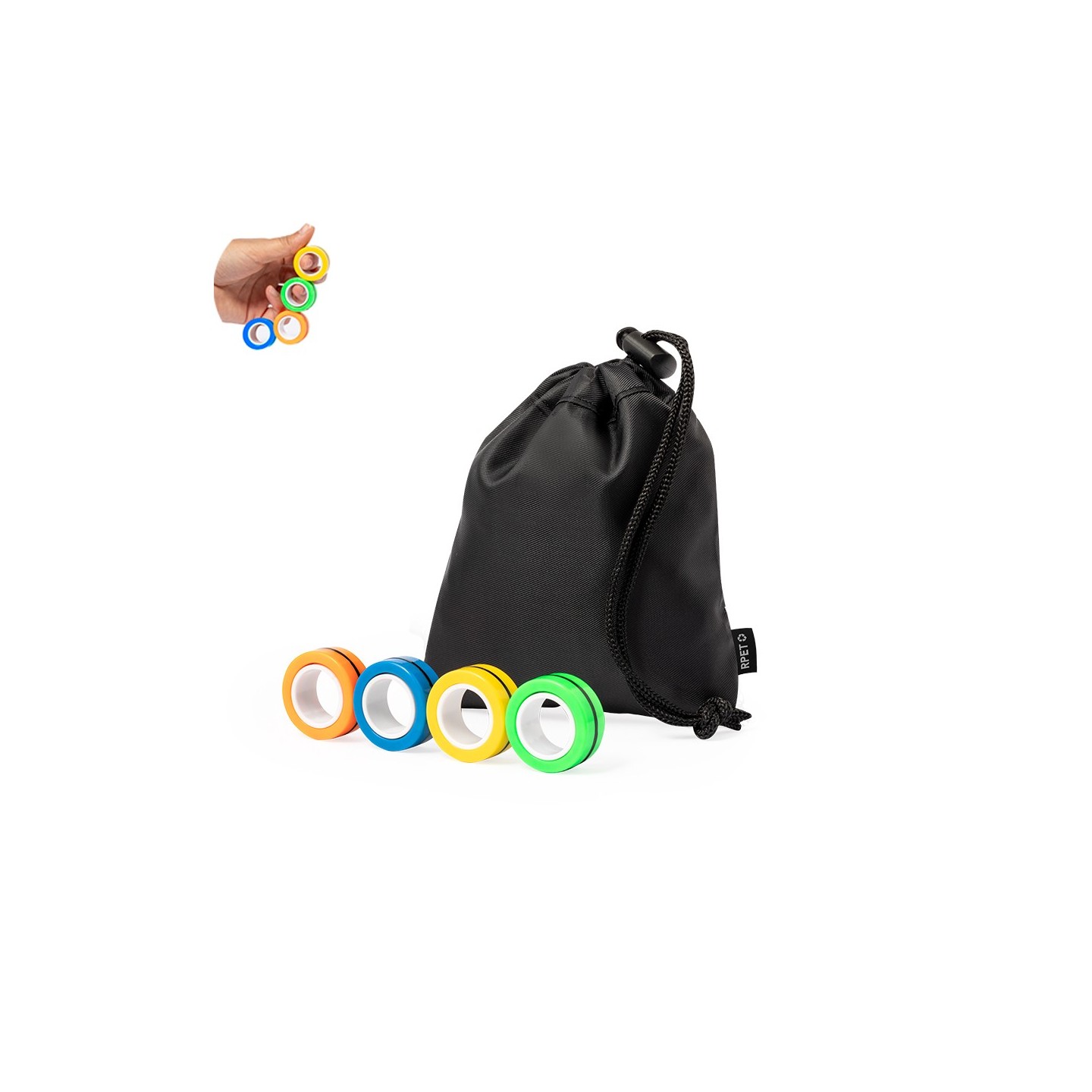 Este original antiestrés tiene la forma de anillos y está diseñado para proporcionar una experiencia táctil y visual única. Consta de cuatro piezas de colores, cada una con imanes que permiten juntar y separar los anillos tantas veces como se desee. Su característico movimiento circular ayuda a liberar la tensión acumulada y promueve una sensación de calma y bienestar.