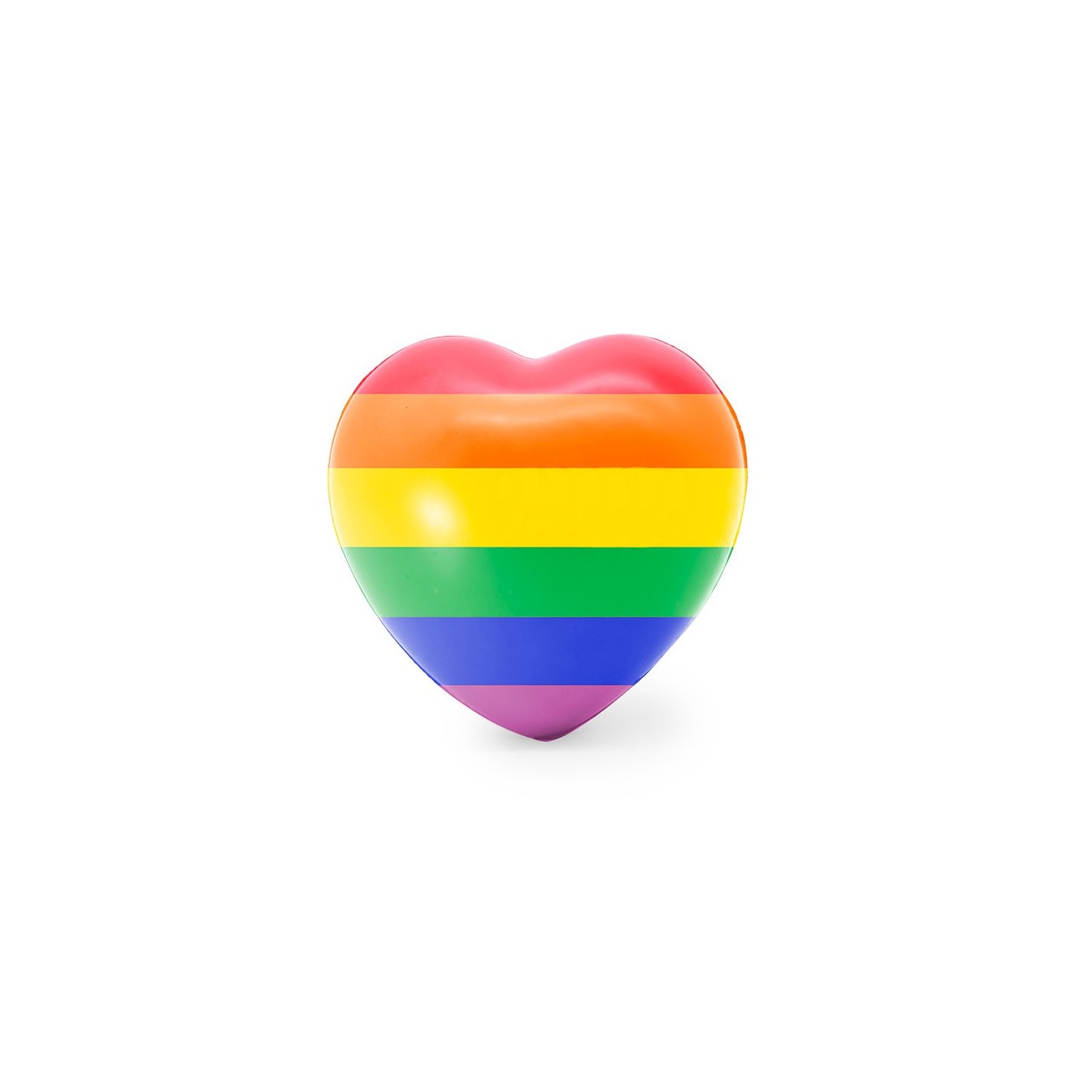 Antiestrés KANEDAX LGBTI en forma de corazón con diseño arcoíris, fabricado en PU brillante. Perfecto para temáticas gay y personalizable con tu logotipo.