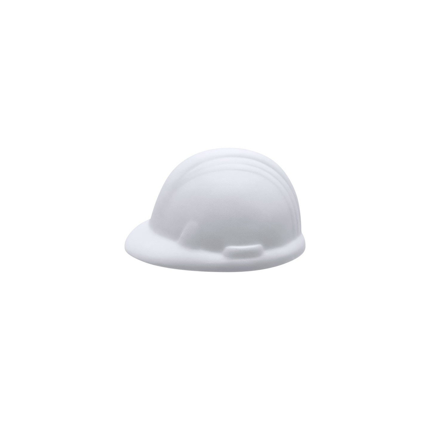 Antiestrés SOREN en forma de casco de trabajo, fabricado en suave PU. Ideal para empresas de construcción, inmobiliarias y promotoras. Personalizable con tu logotipo.