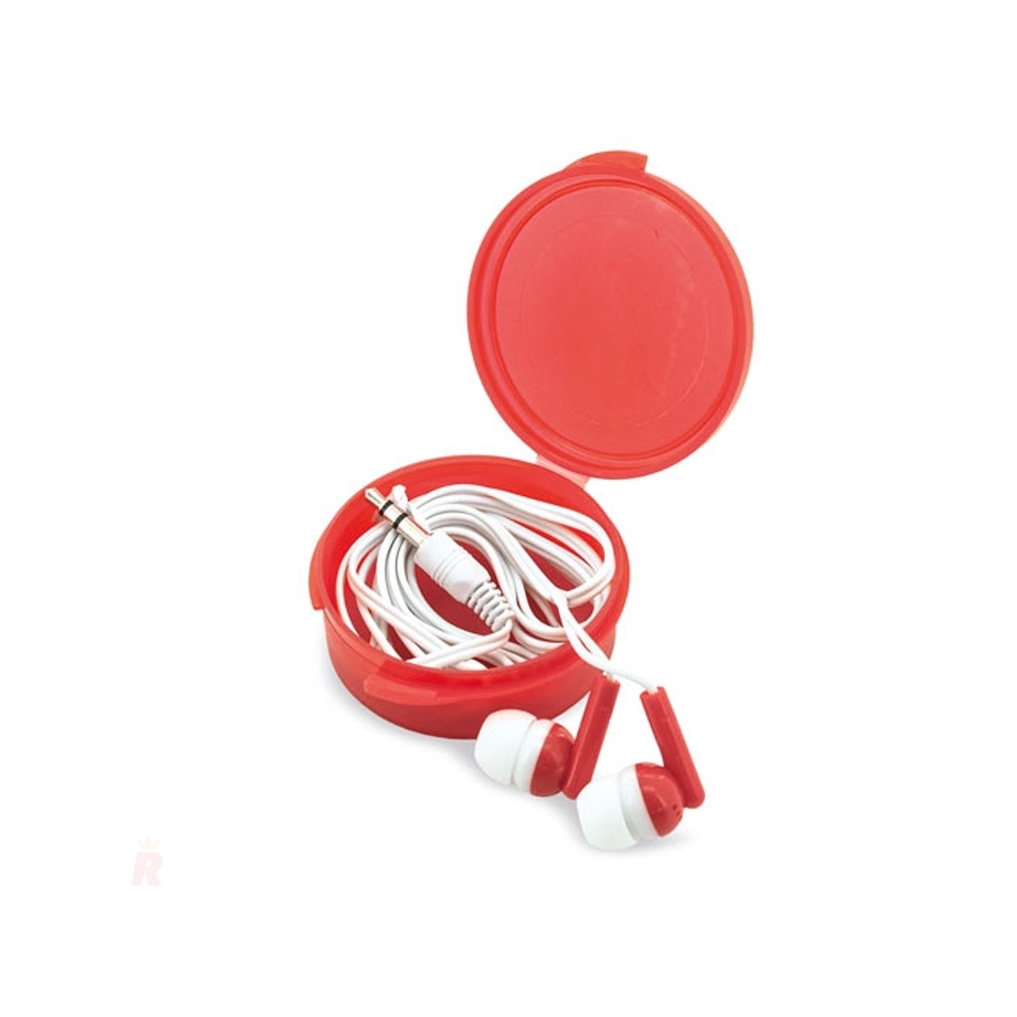 Auriculares simples y funcionales, fabricados en PP y presentados en una caja de plástico. Ideales para personalizar con tu logotipo y ofrecer comodidad al usuario