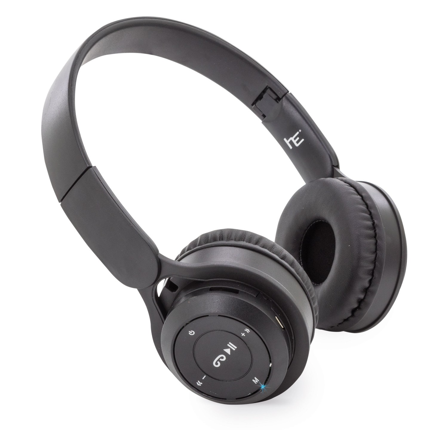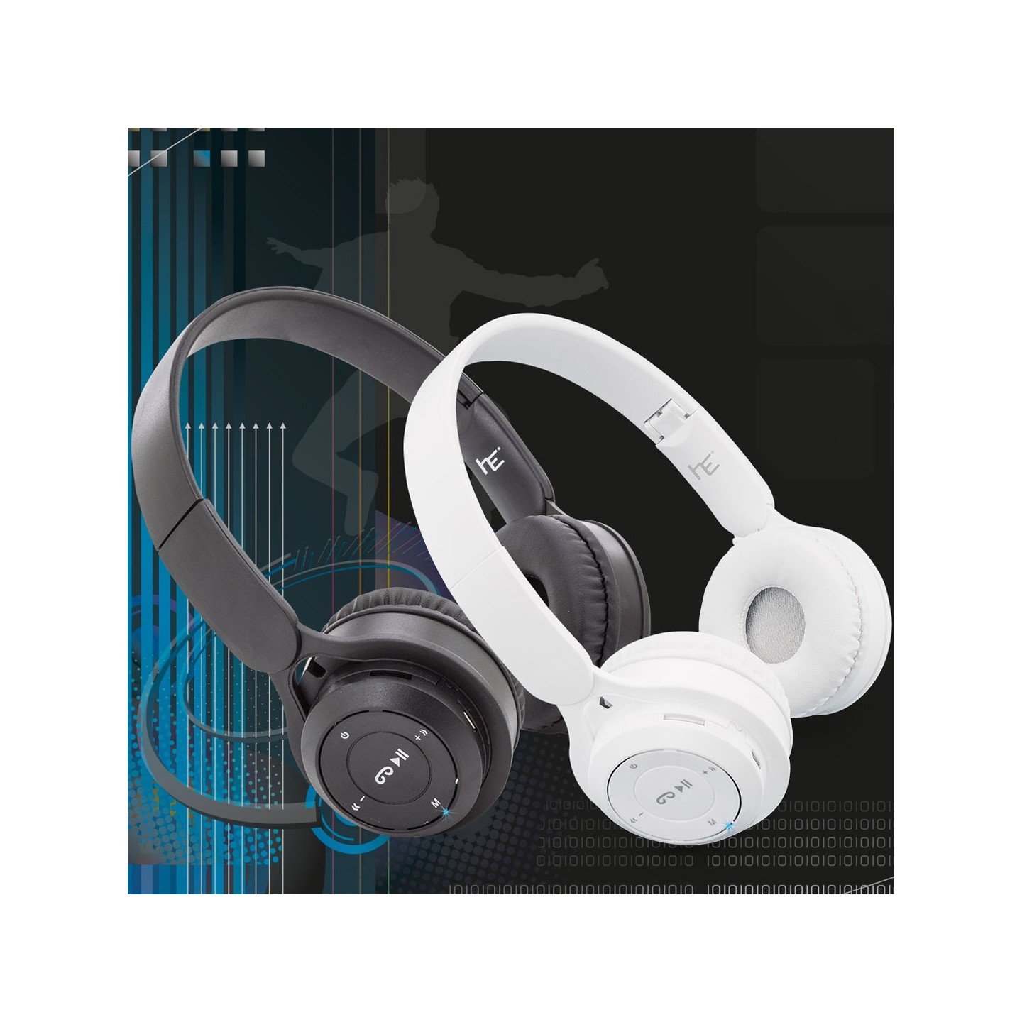 Auriculares plegables Bluetooth 5.0 con radio FM y recepción de llamadas. Incluyen cables Jack 3.5 mm y Micro USB. Sonido nítido, conexión estable y carga rápida