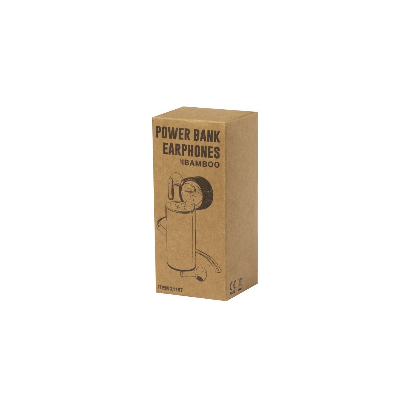 Auriculares intraurales de conexión Bluetooth® 5.0, con power bank en la base de carga. Con controles integrados y función manos libres, cada uno con una batería de 30 mAh de capacidad. Se alojan dentro de una base de carga a juego, con tapa y base de bambú, que incluye una batería interna de 4.500 mAh de capacidad y un cable de carga Tipo C integrado. Base con conexiones Tipo C de entrada/salida, conexión USB e indicador LED de estado de carga, además de dos almohadillas de goma antideslizantes. Presentados en atractiva caja de diseño kraft.