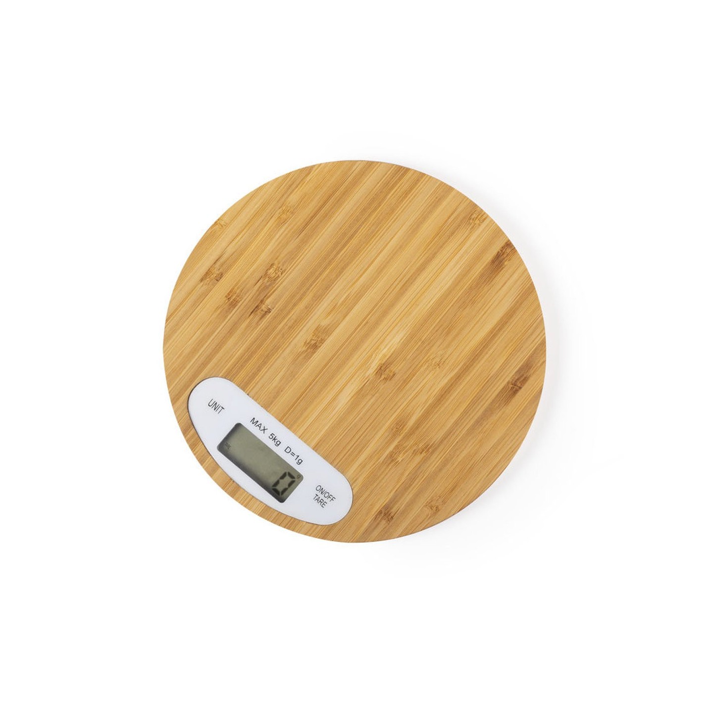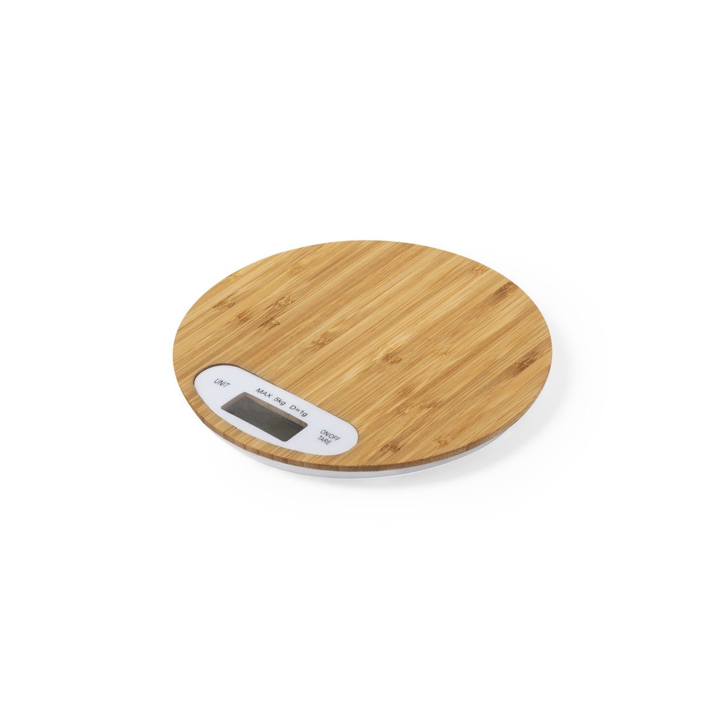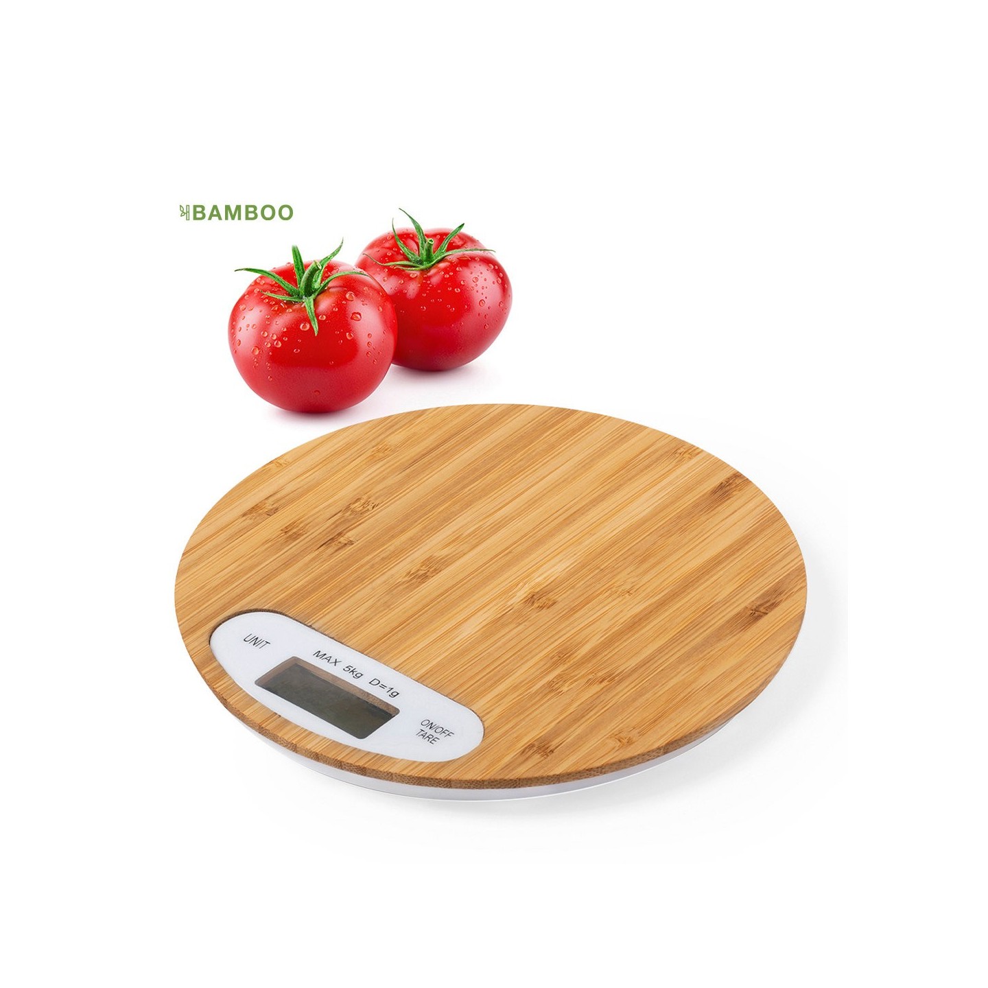 Báscula de cocina Hinfex en bambú pulido con display digital, funciones prácticas y diseño eco. ¡Perfecta para tu cocina!