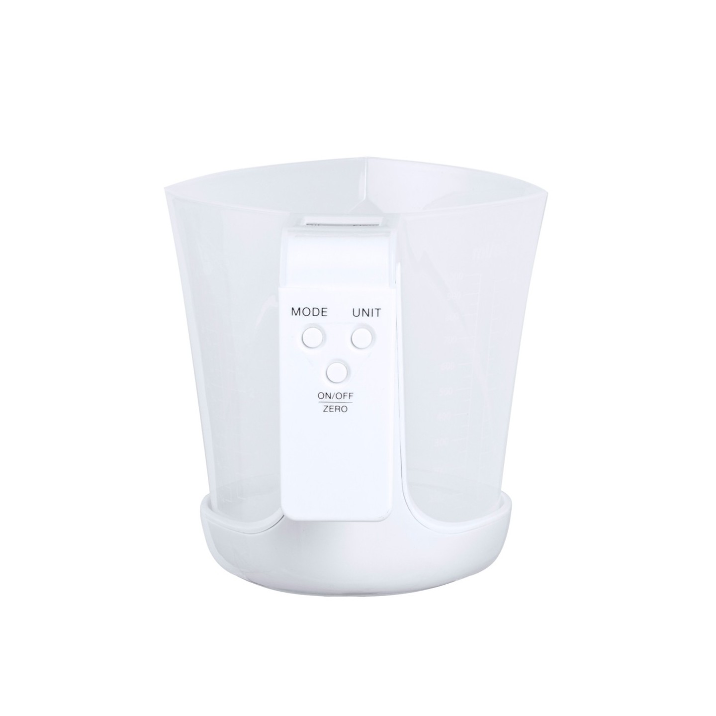 La Báscula Medidora Plazix incluye una jarra medidora de 1L de capacidad, con múltiples opciones de medición y un vertedor para evitar derrames. Podrás medir en tramos de 50 ml o 2 oz, además de contar con una medición rápida en volumen de tazas.