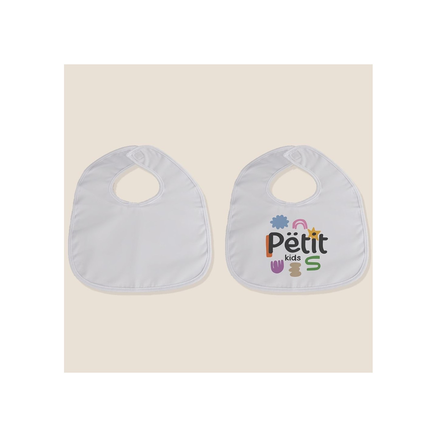 El Babero Nappy es de poliéster sublimable de calidad, 27 x 32 cm. Certificación REACH y Low Cadmium. Ideal para personalización creativa y segura.