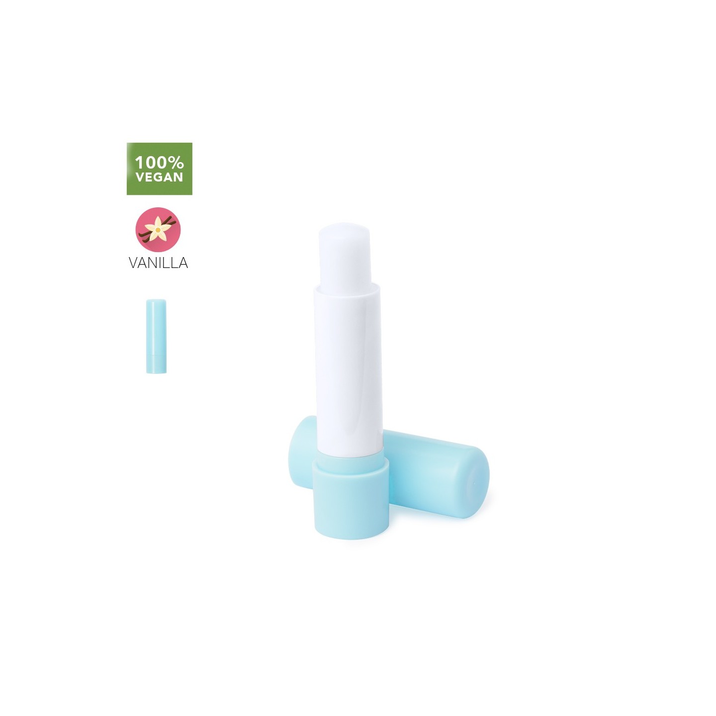 El Bálsamo Labial Vegano Posie es 100% natural, origen vegetal, aroma vainilla y protección SPF15. Personalizable y presentado en bolsa reciclada