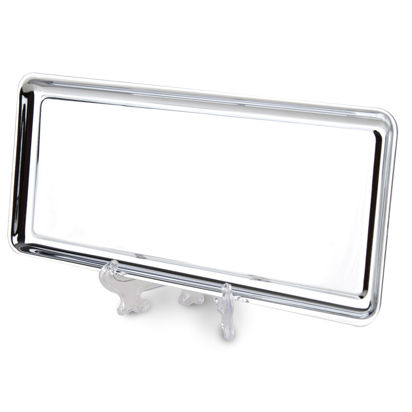 La Bandeja Cromada Rectangular ARRAS, de acero cromado, es perfecta para llevar arras o anillos en bodas o como pieza decorativa en ocasiones formales.