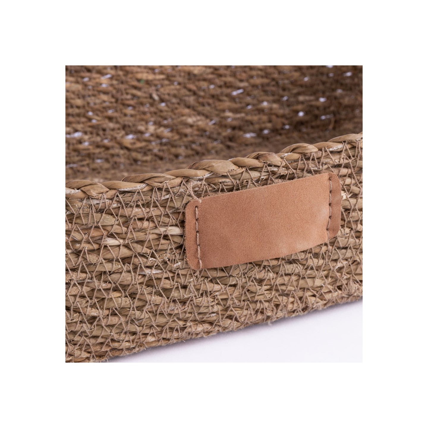 Bandeja MARIN de algas entretejidas con etiqueta PU para personalizar. Ideal para presentación de productos, con superficie especial para marcaje.