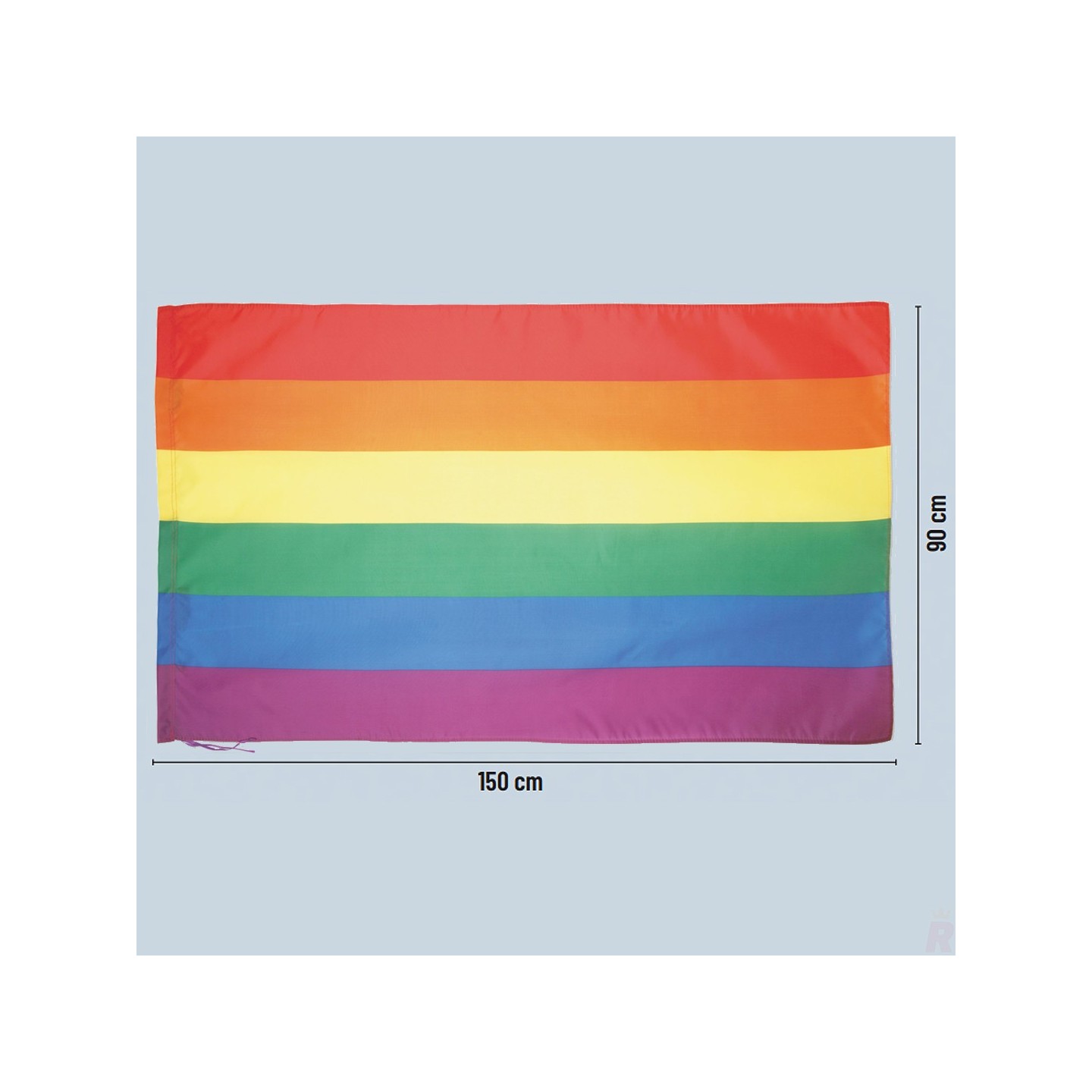 Bandera XL en poliéster con diseño arcoíris, ideal para el orgullo LGBTI+. Con alojamiento para insertar palo (palo no incluido). Perfecta para eventos, celebraciones y publicidad con gran impacto visual