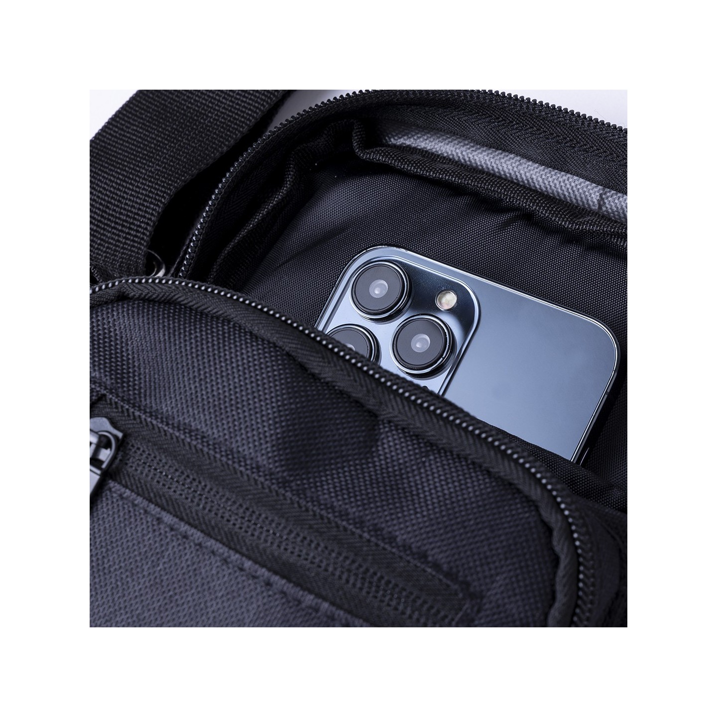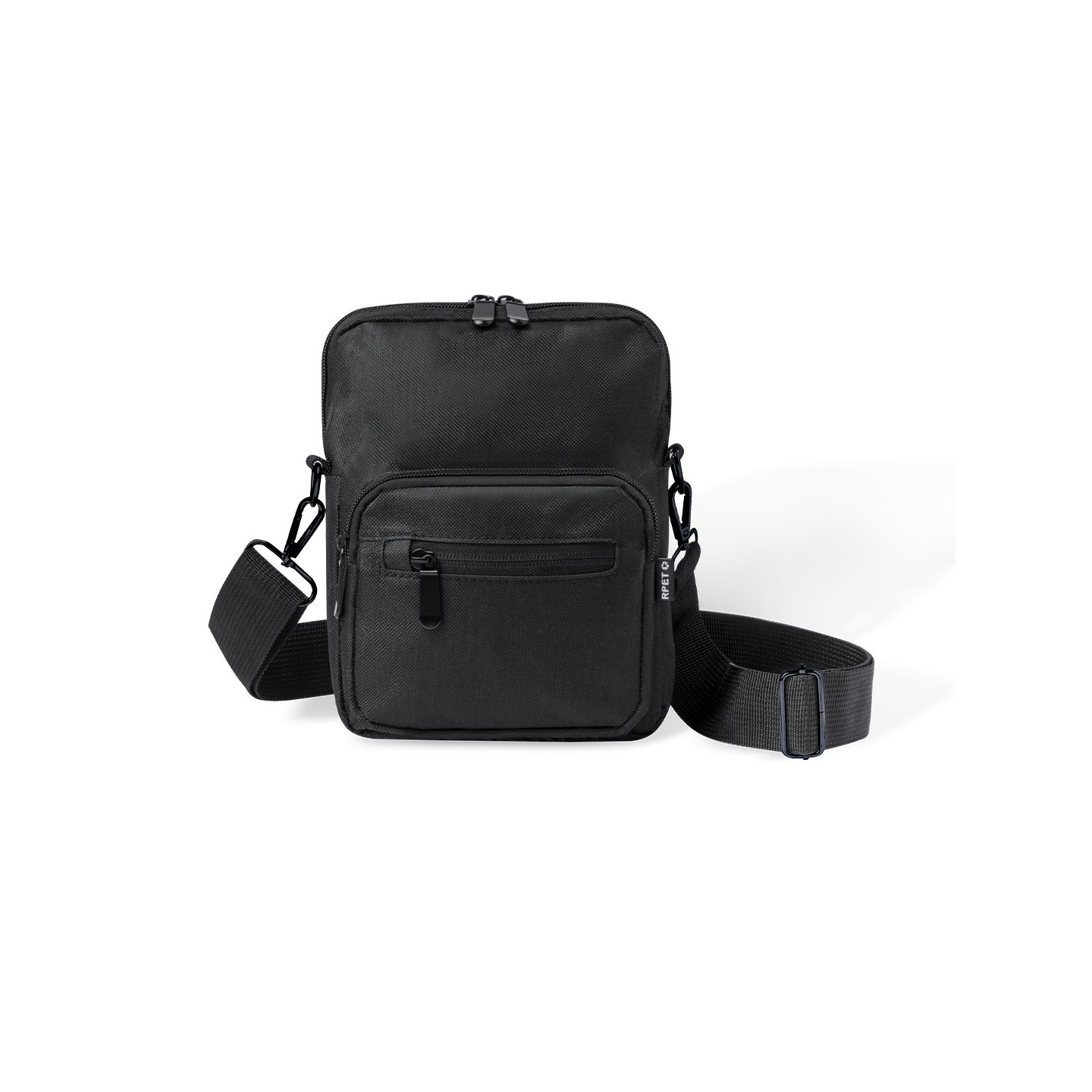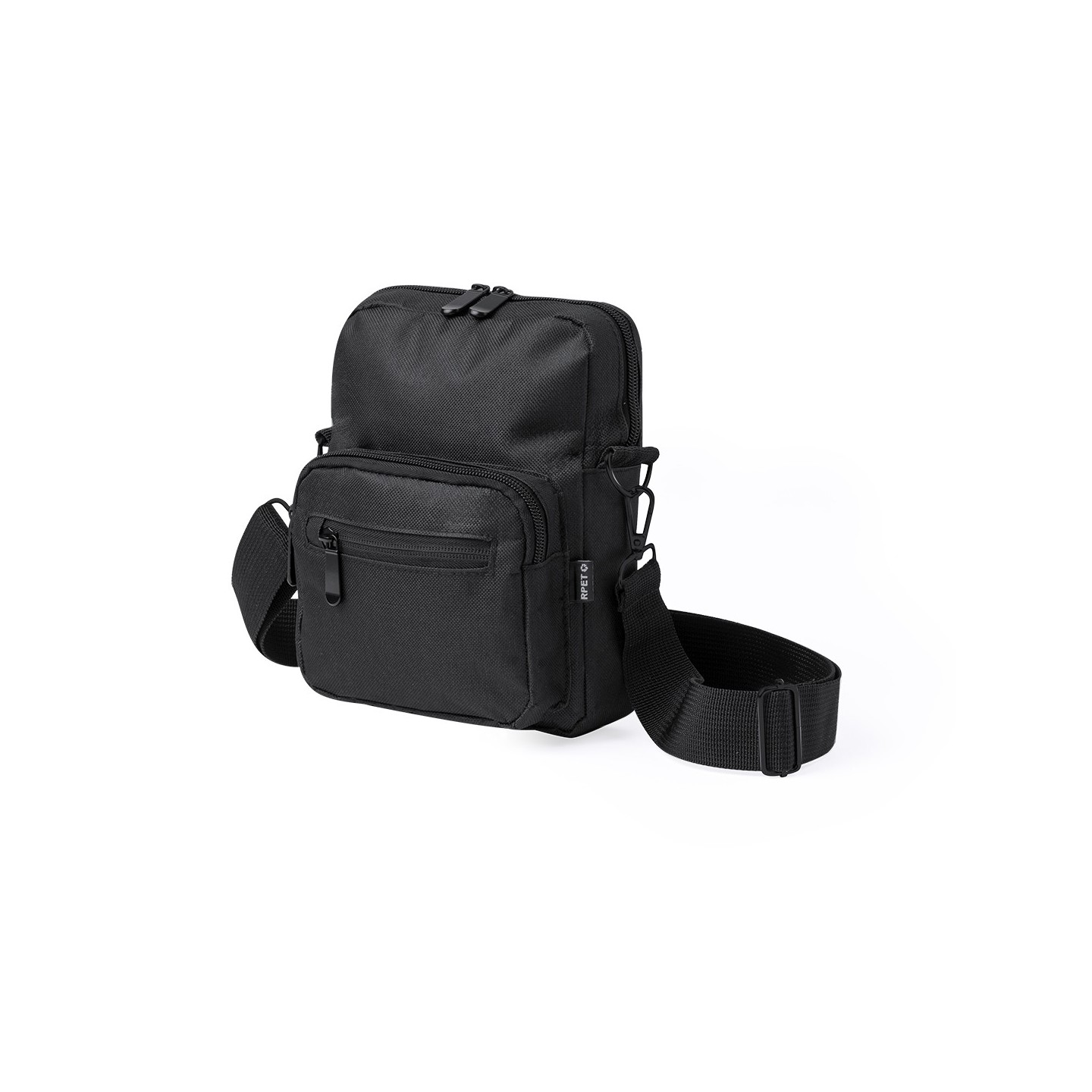 La Bandolera Lixia es de poliéster RPET 600D, bolsillo central con cremallera, doble tirador, compartimentos frontales. Personalizable y eco-friendly