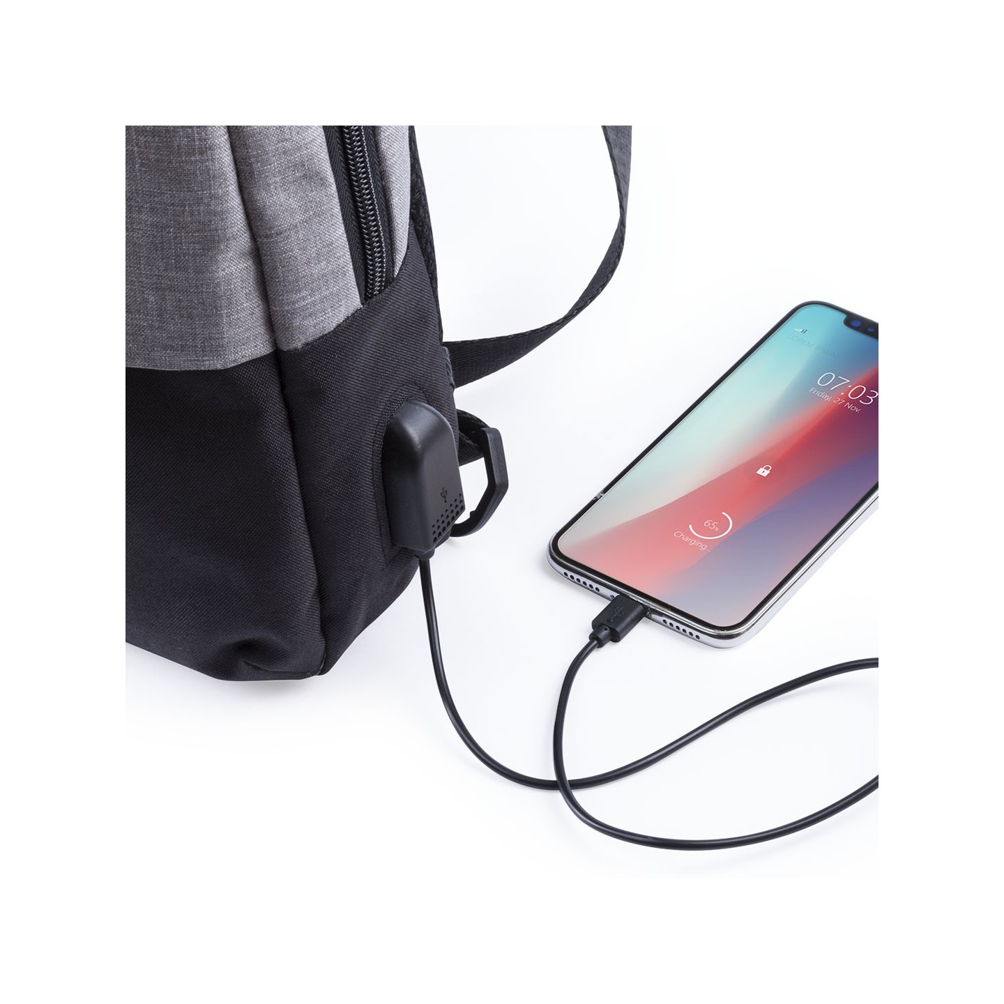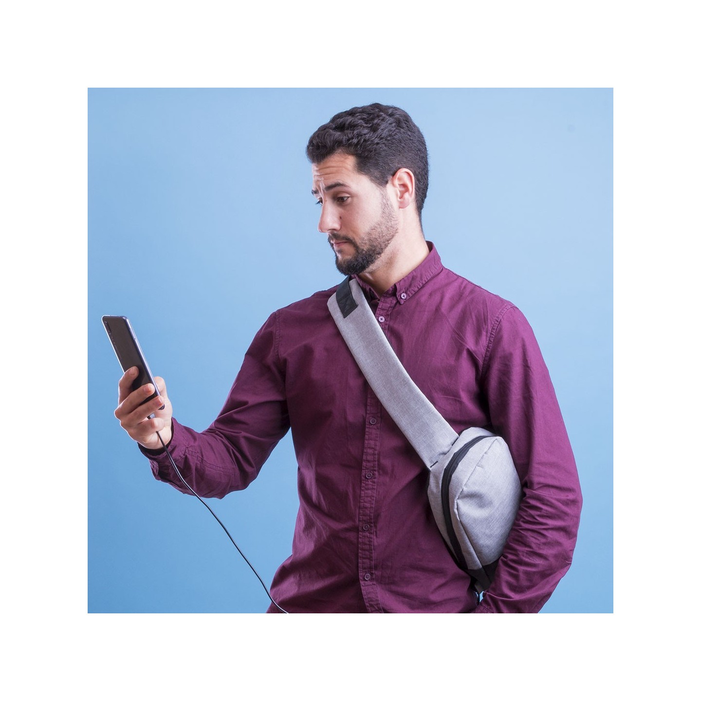 Su diseño urbano en combinación de colores gris denim y negro, la convierte en una opción atractiva y moderna, perfecta para llevar en cualquier ocasión. Además, cuenta con una conexión USB para carga, lo que te permitirá cargar tus dispositivos móviles en cualquier momento, aunque el powerbank y el cable no están incluidos.