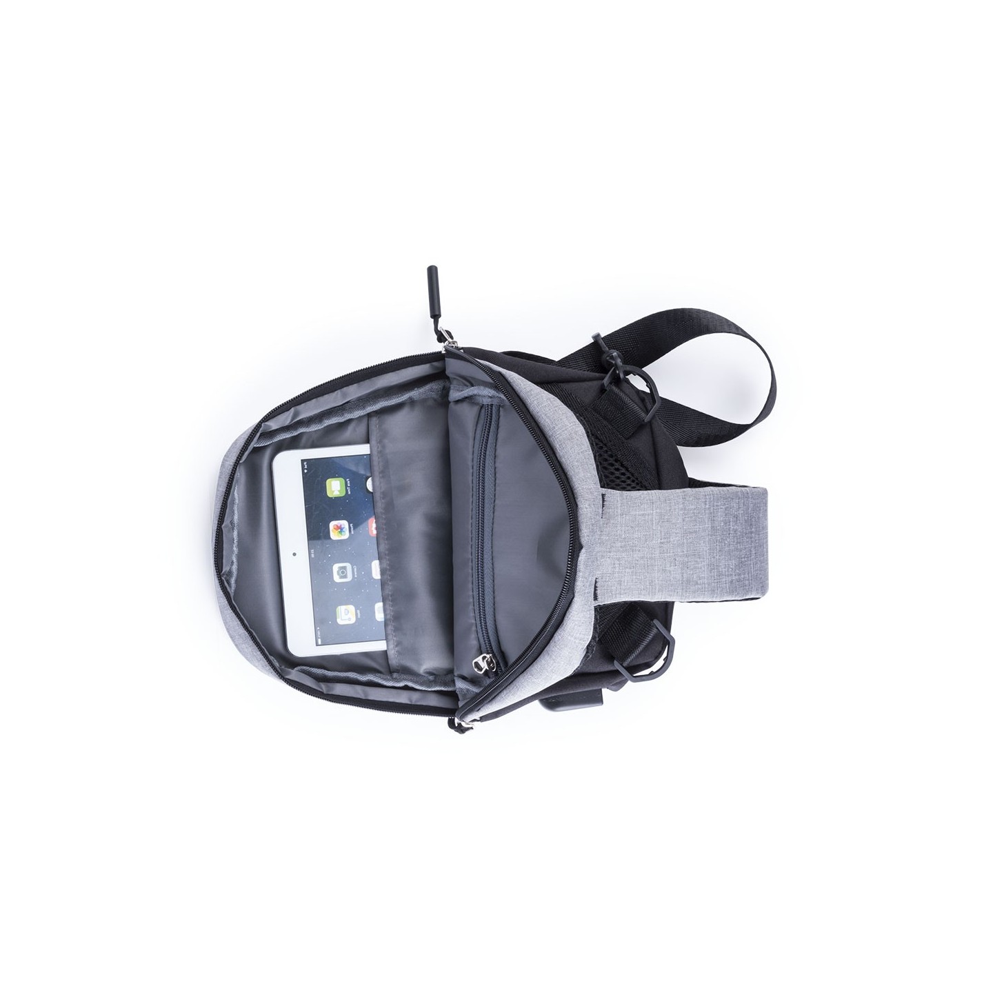 Lleva contigo todo lo que necesitas con la bandolera Versox. Con diseño urbano en gris denim y negro, conexión USB, bolsillo para tablet y acolchados en espalda y cinta.