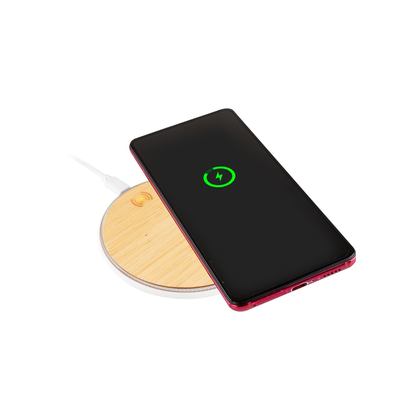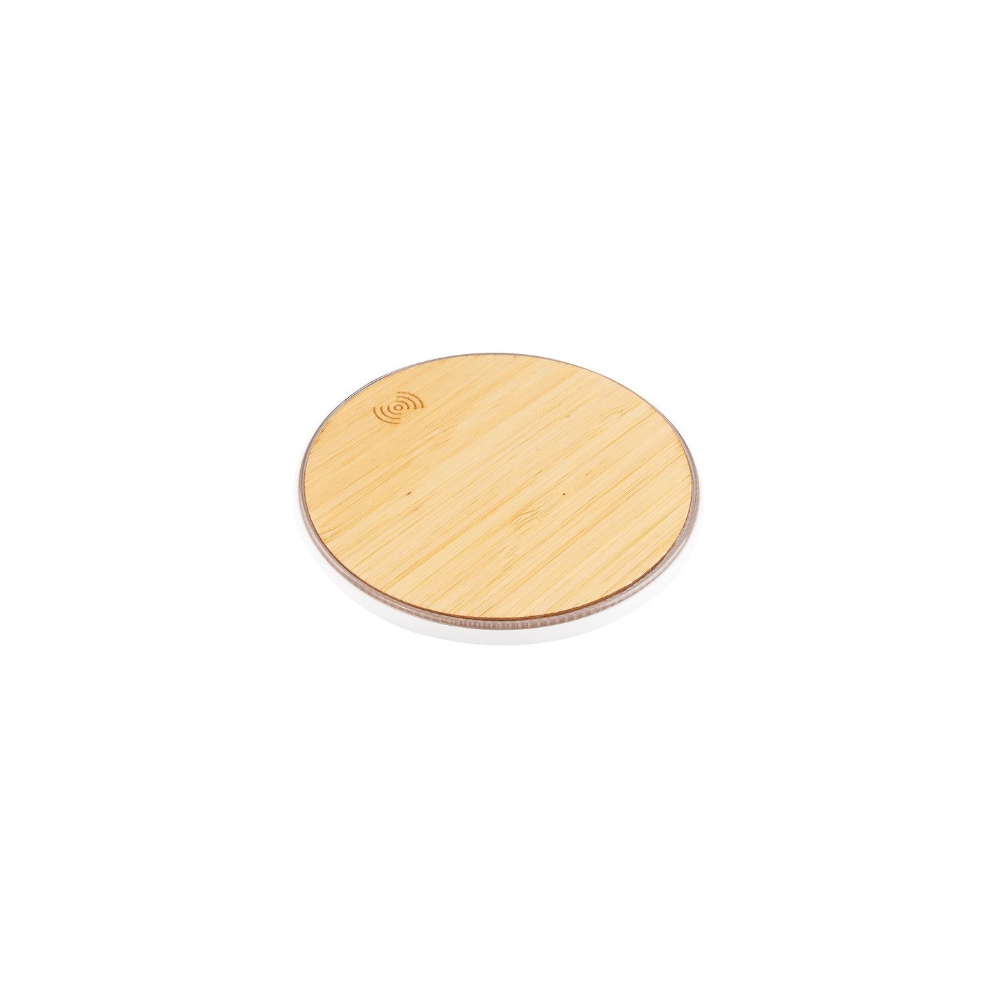 La Base de Carga Baret es inalámbrica 5W con cubierta de bambú. Diseño elegante, puerto microUSB. Certificada CE, RoHS, EMC. Presentación en caja individual.