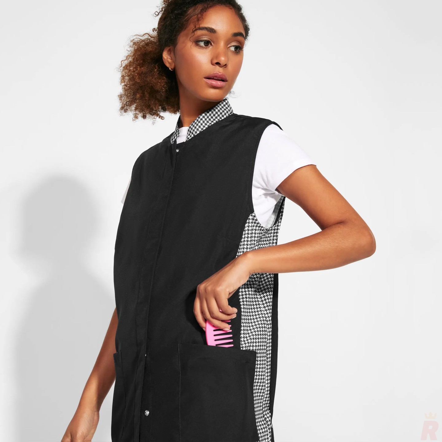 La Bata Sin Mangas Mujer ALDANY está diseñada para ofrecer una combinación perfecta de funcionalidad, confort y estilo en entornos profesionales exigentes como peluquerías, centros de estética o alimentación. Esta casaca sin mangas para mujer resalta por su diseño moderno y ergonómico, adaptado para largas jornadas laborales.