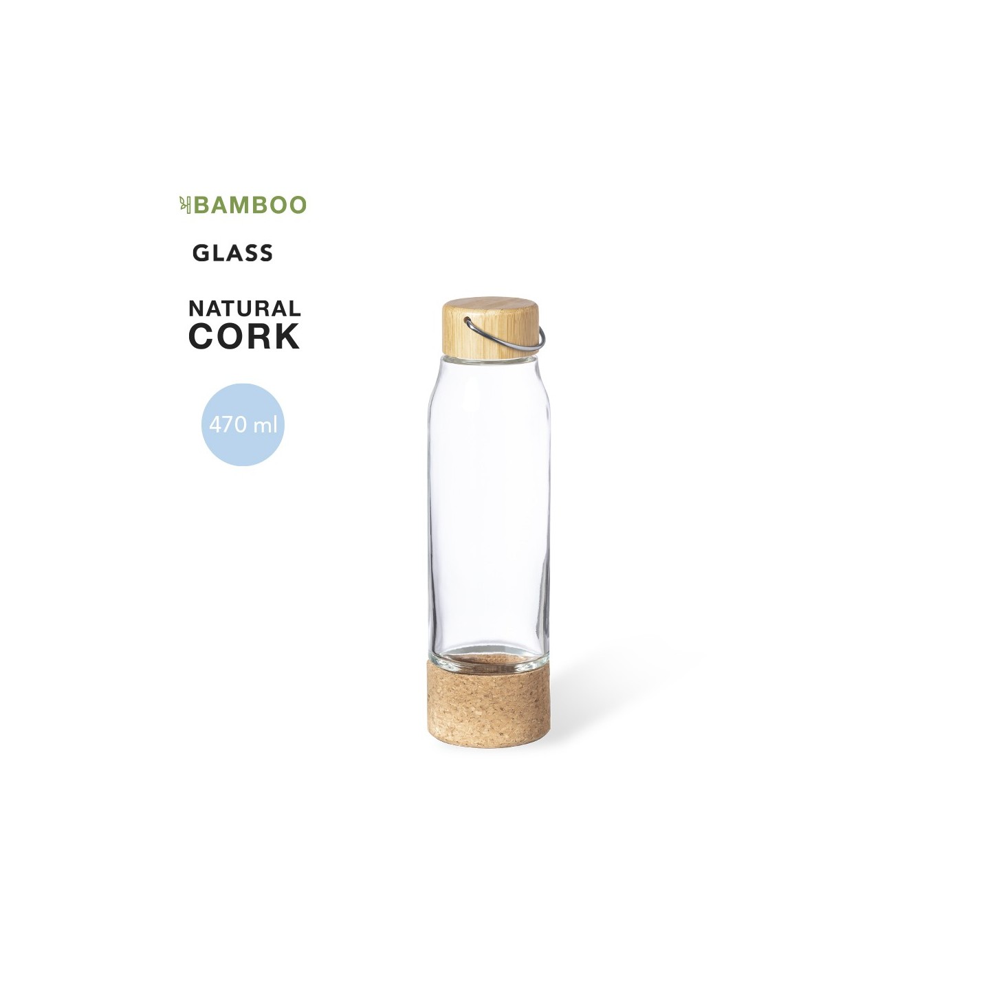 El Bidón Aderox es eco-friendly de cristal y corcho, con tapón de bambú. Ideal para llevar tus bebidas favoritas. Personalízalo y regala calidad y estilo.