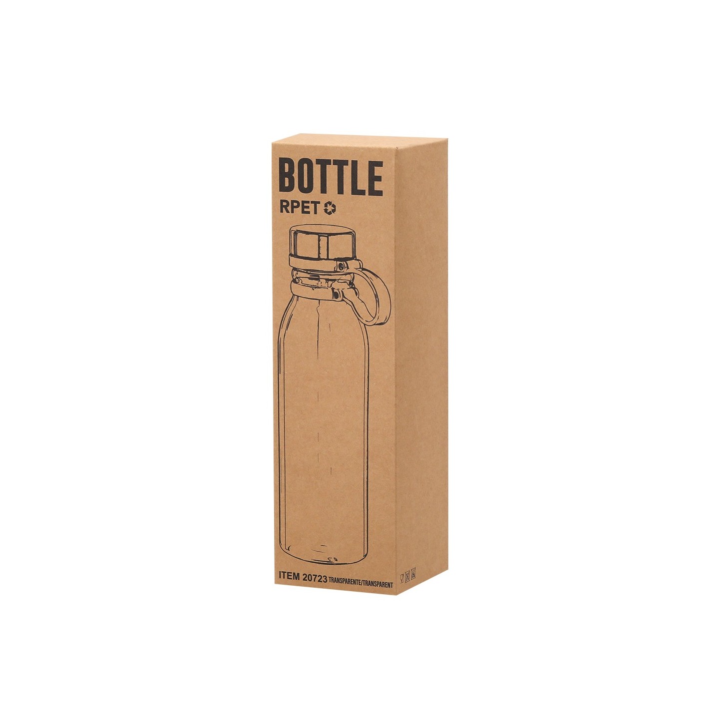 El Bidón Albrait es de 830ml, RPET reciclado. Tapón de seguridad en acero inox, cinta de silicona. Personalizable. Libre de BPA. Presentado en caja kraft