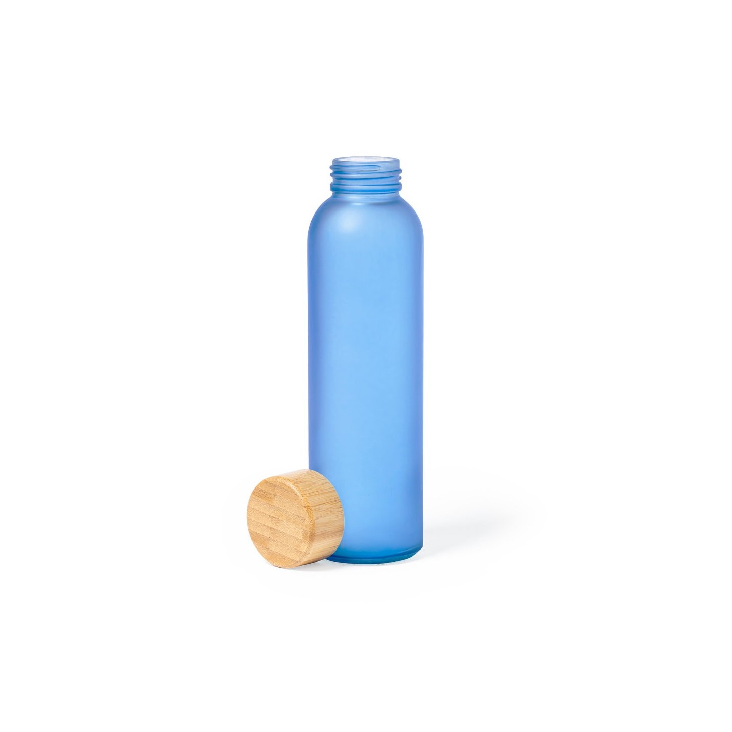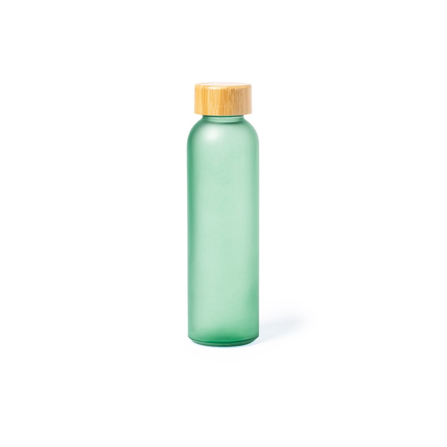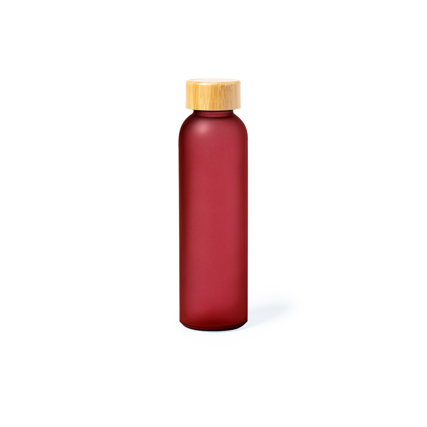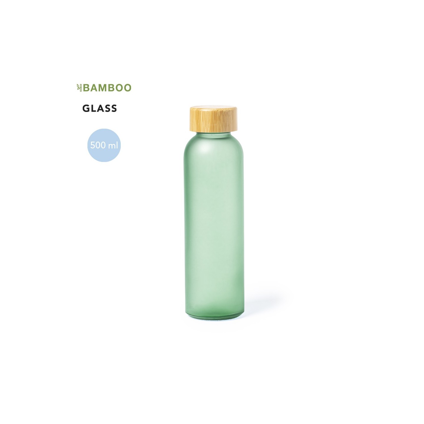 Bidón Eskay de 500 ml, cuerpo de cristal, tapón de bambú a rosca y libre de BPA. Disponible en varios colores. Ideal para regalos corporativos.
