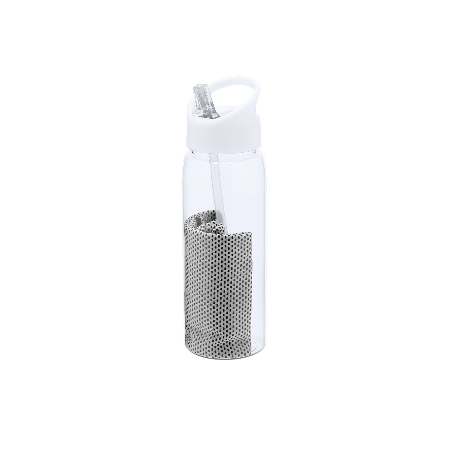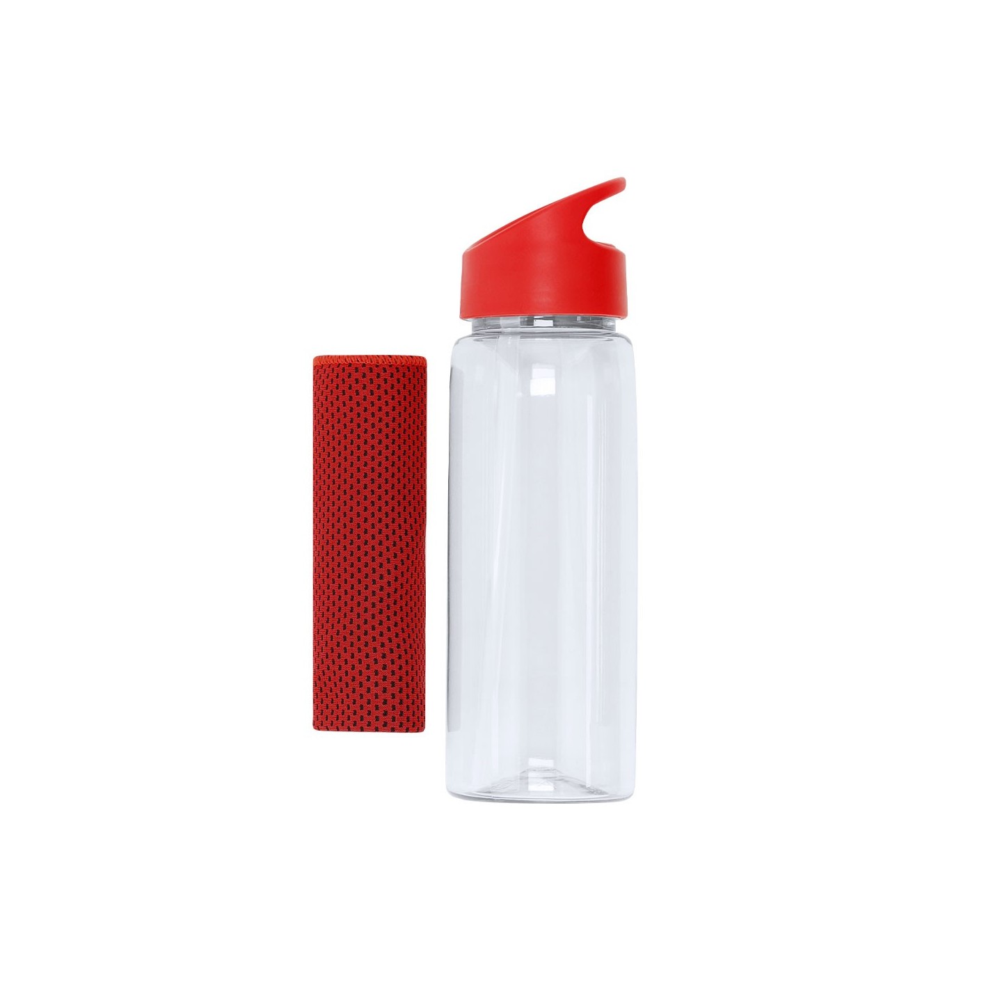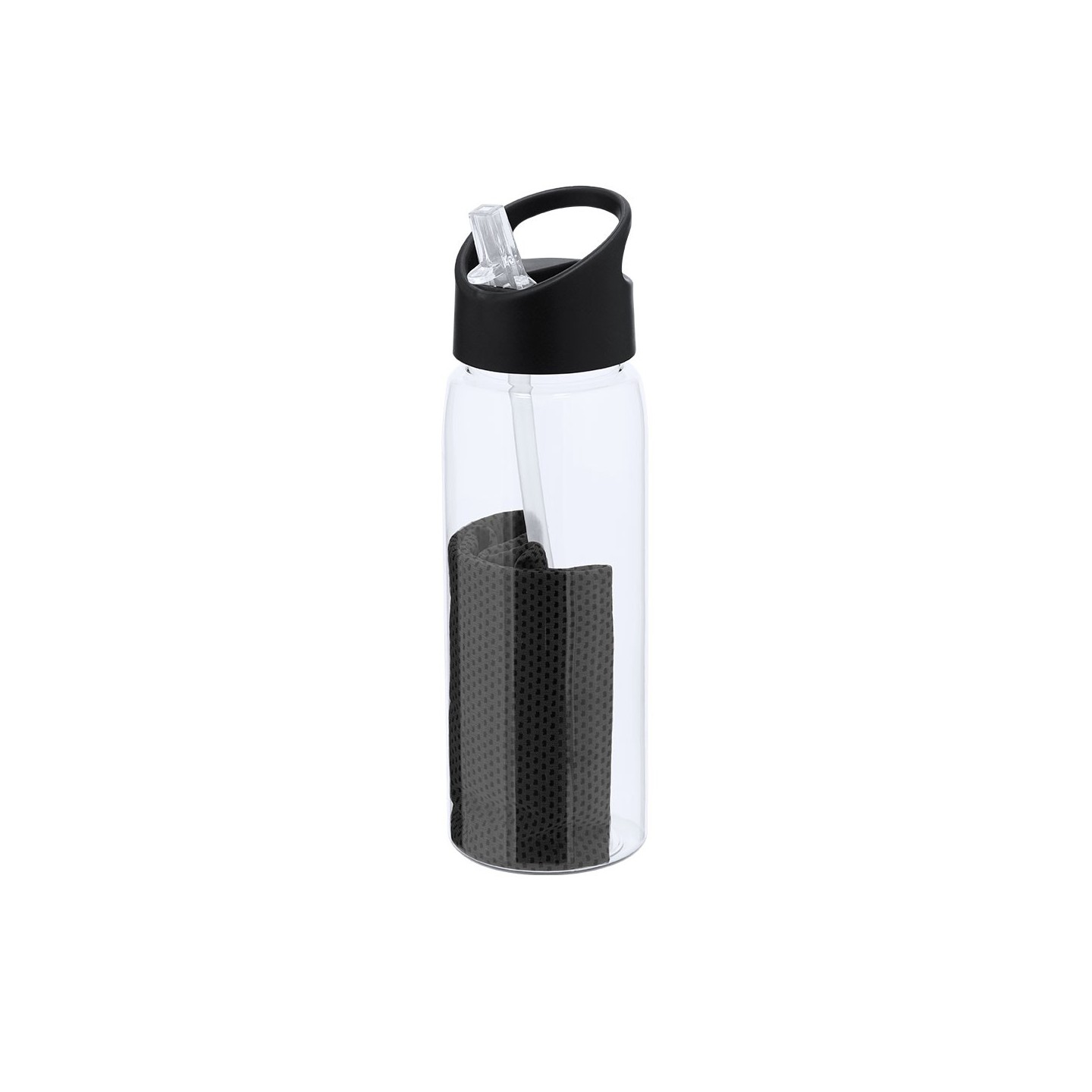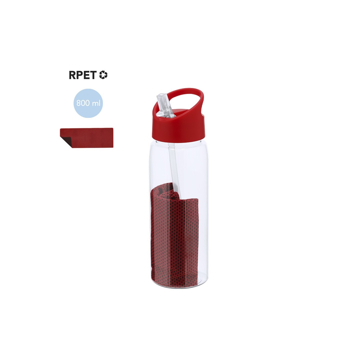 Set de bidón RPET de 800 ml y toalla a juego. Bidón con dosificador, asa de transporte y sistema fácil de apertura. Personalizable con tu logotipo.