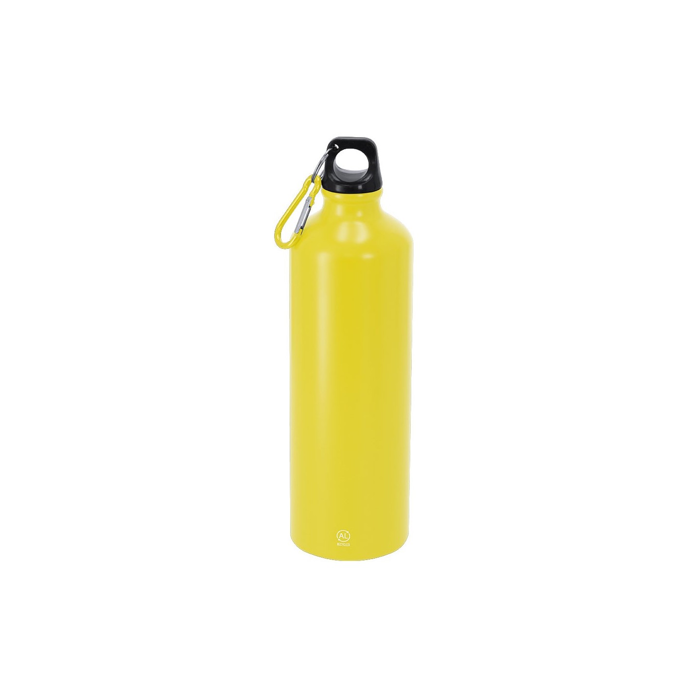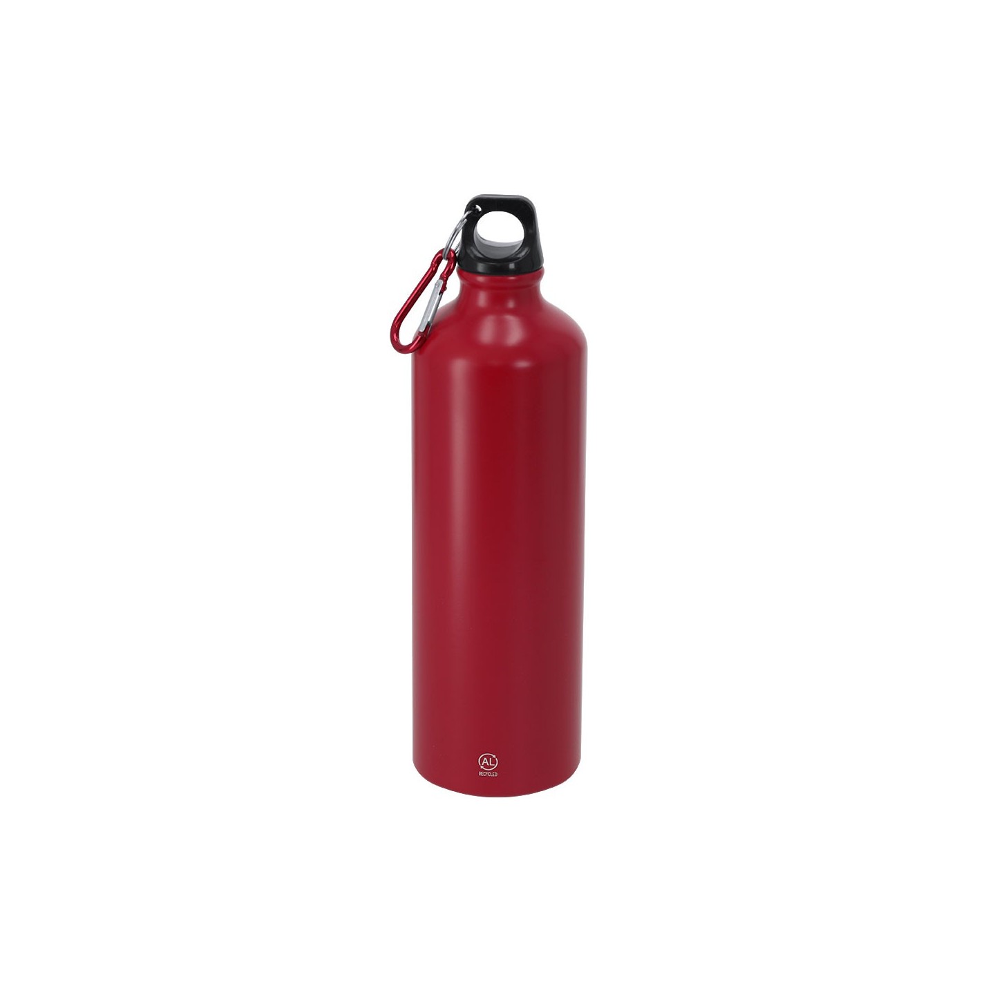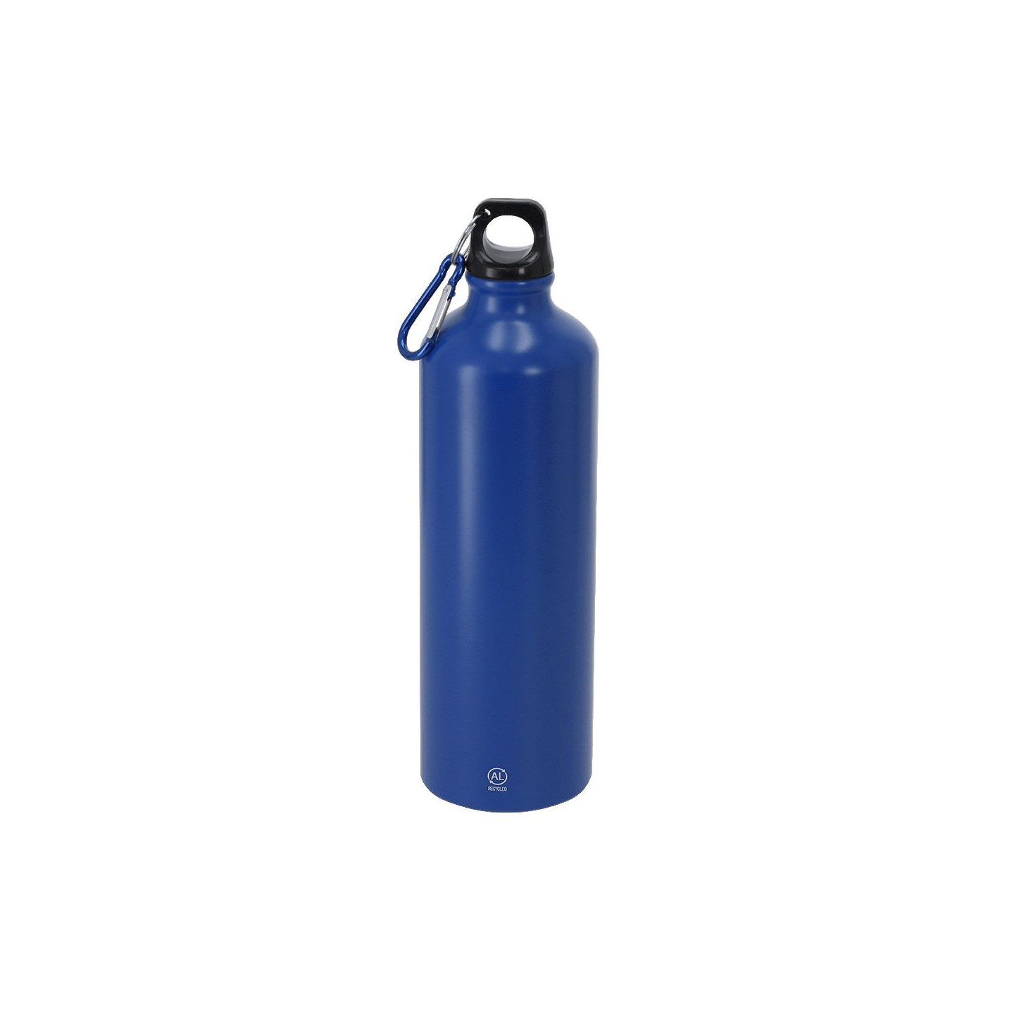 Bidón de 800 ml en aluminio reciclado con tapón a rosca y mosquetón. Personalizable con tu logotipo. Ecológico, resistente y fácil de transportar.