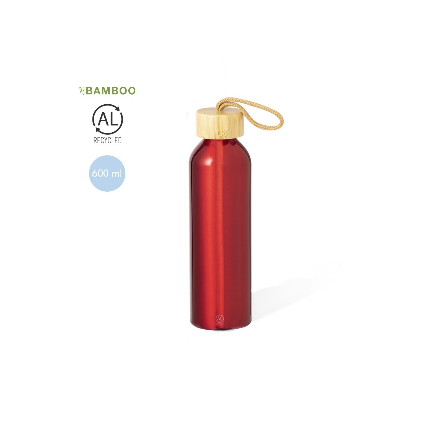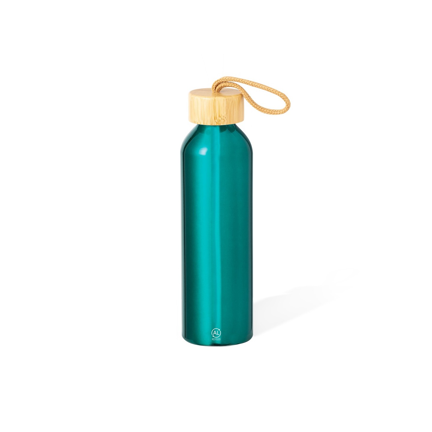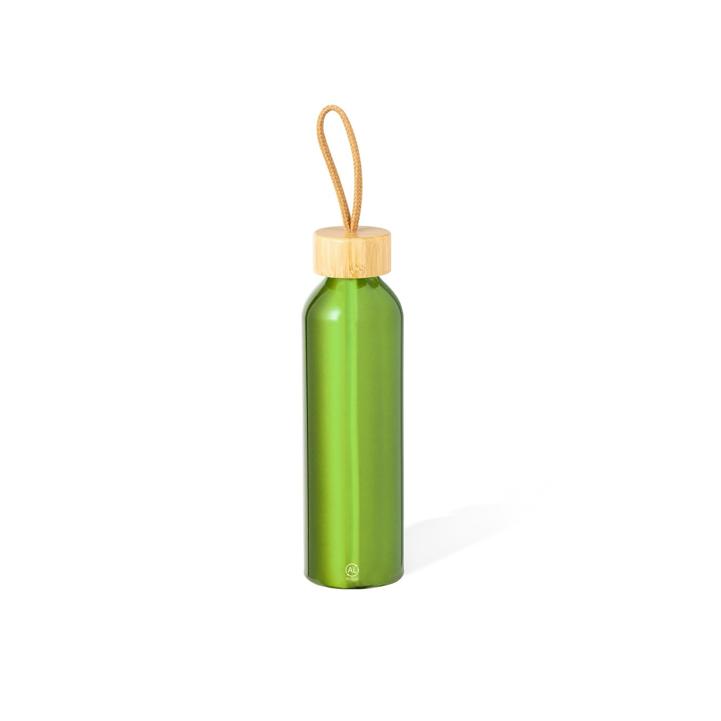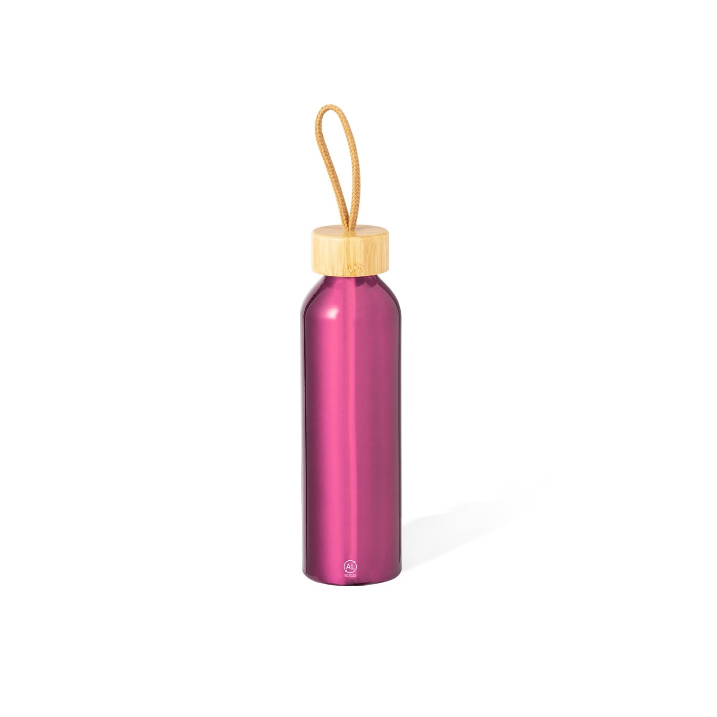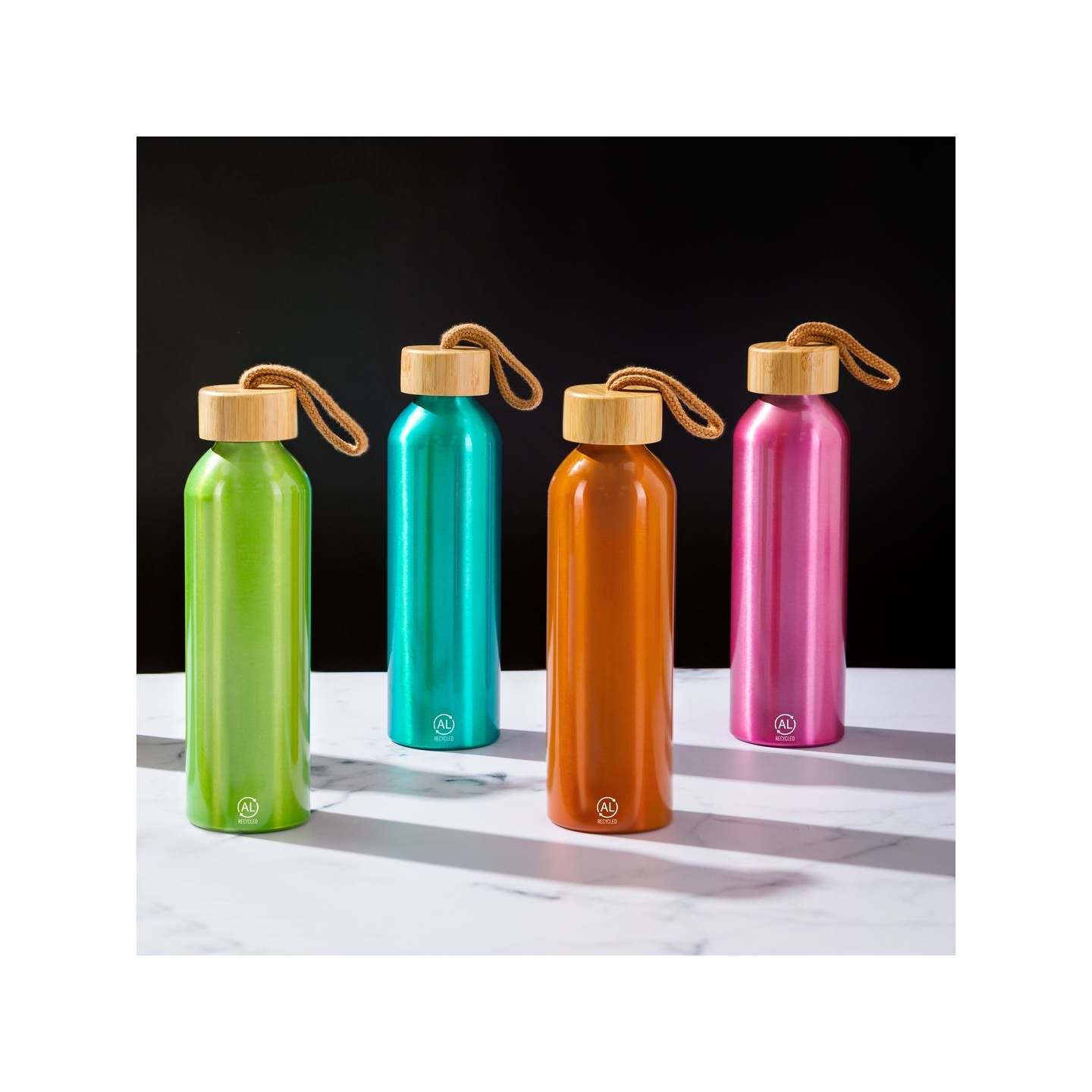 El Bidón Irvinson es de 600 ml de aluminio reciclado en colores pastel. Tapón de bambú y cordón de transporte. Personalizable para tu marca.