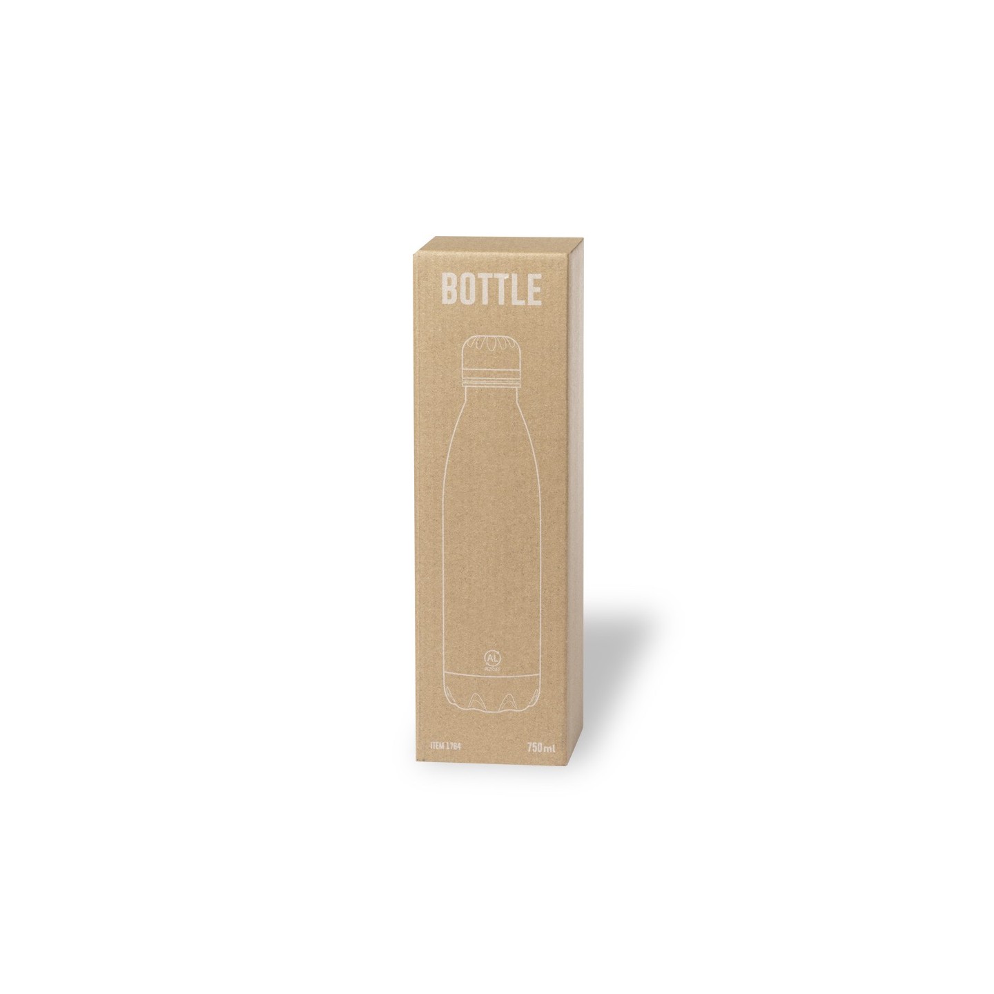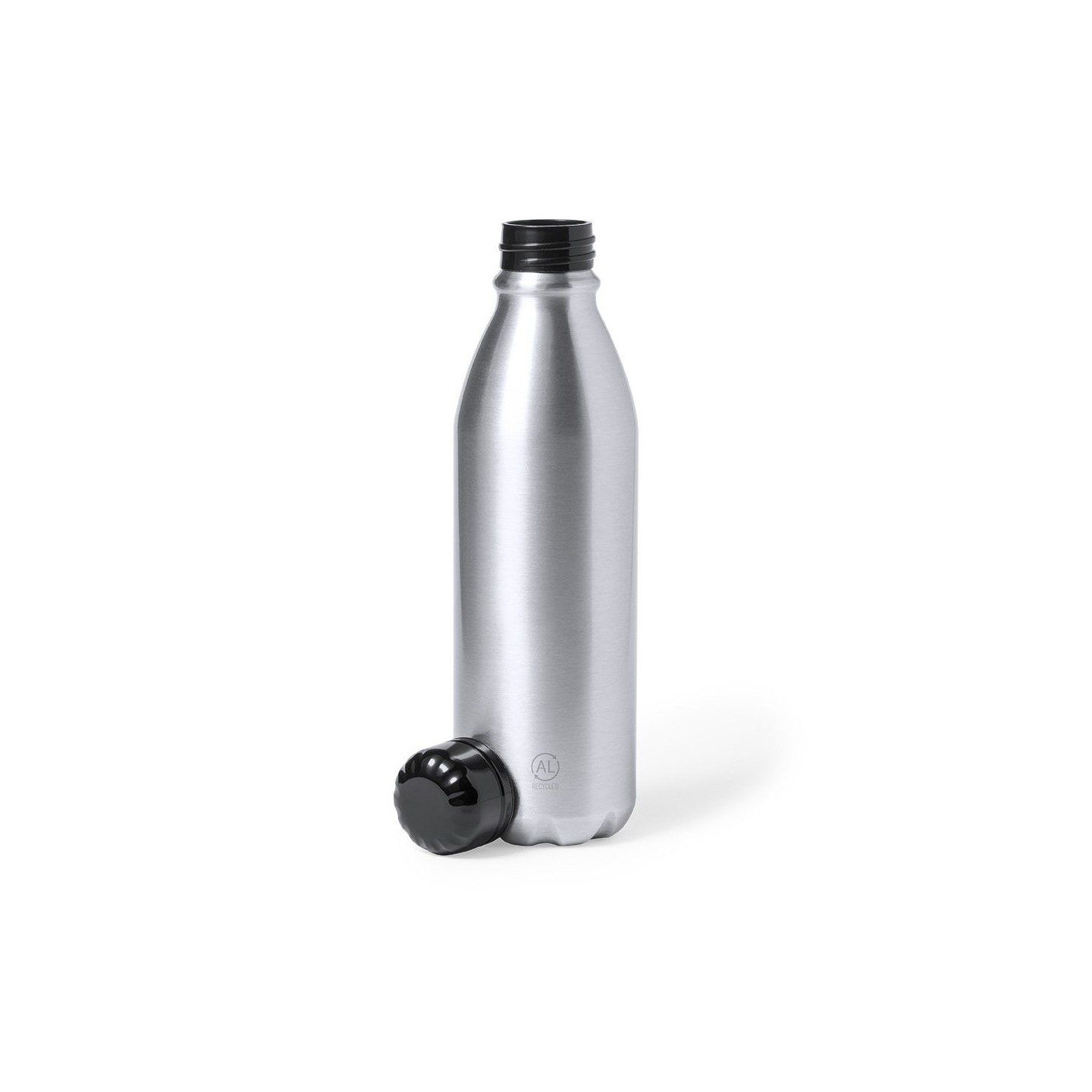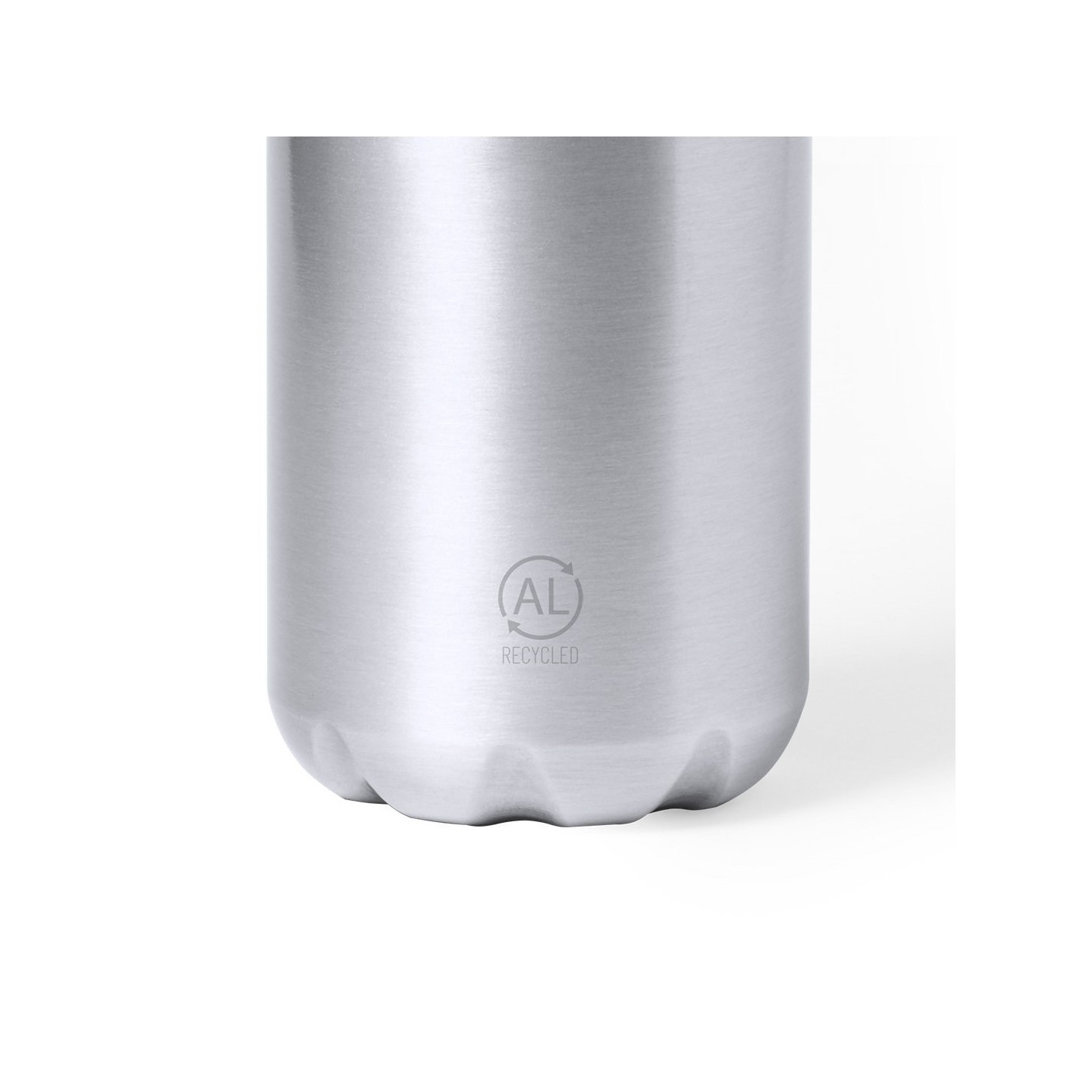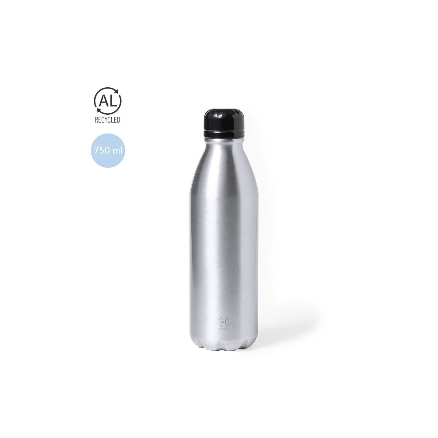 Bidón Kristum de 750 ml, fabricado en aluminio reciclado con acabado mate y tapón a rosca. Libre de BPA y presentado en caja individual.