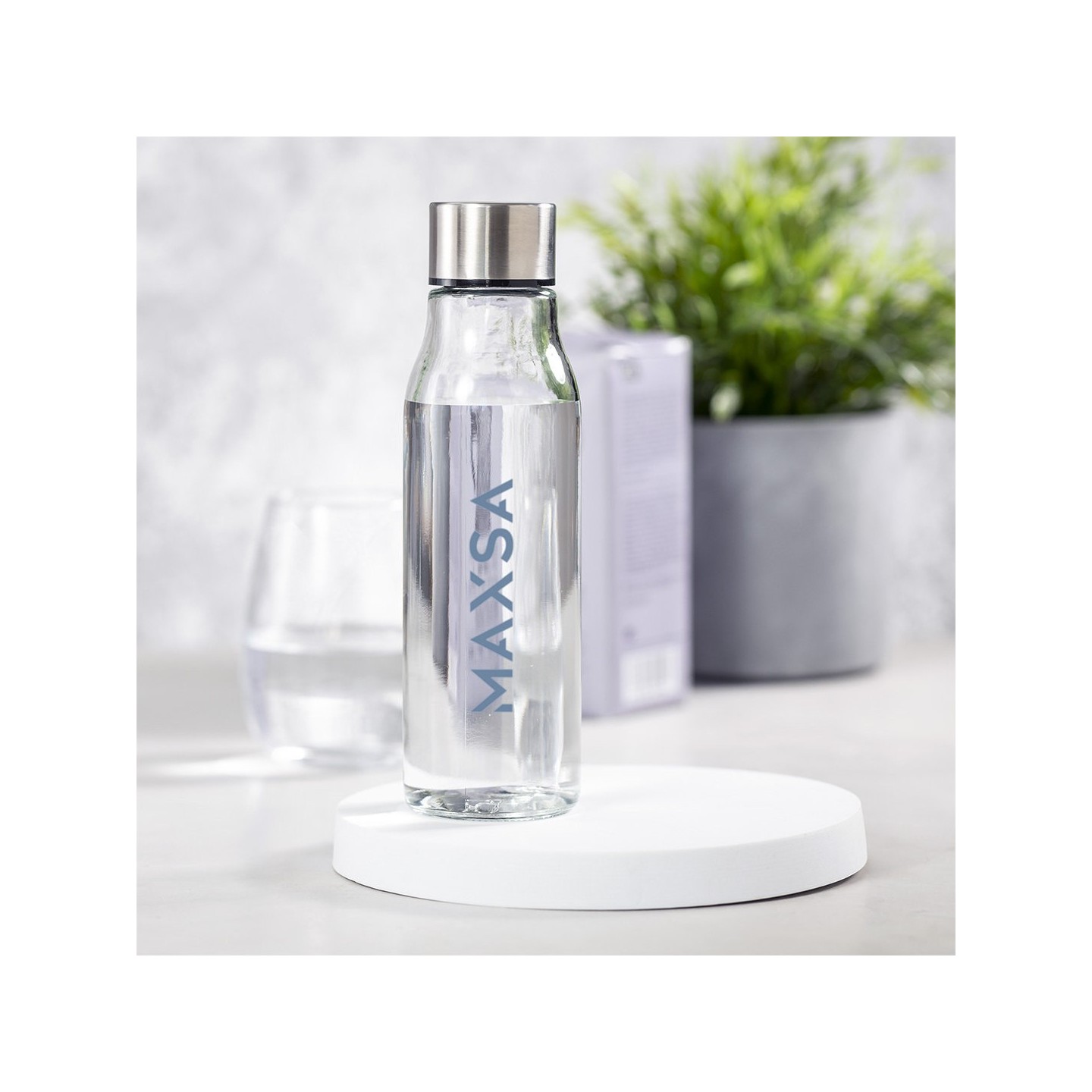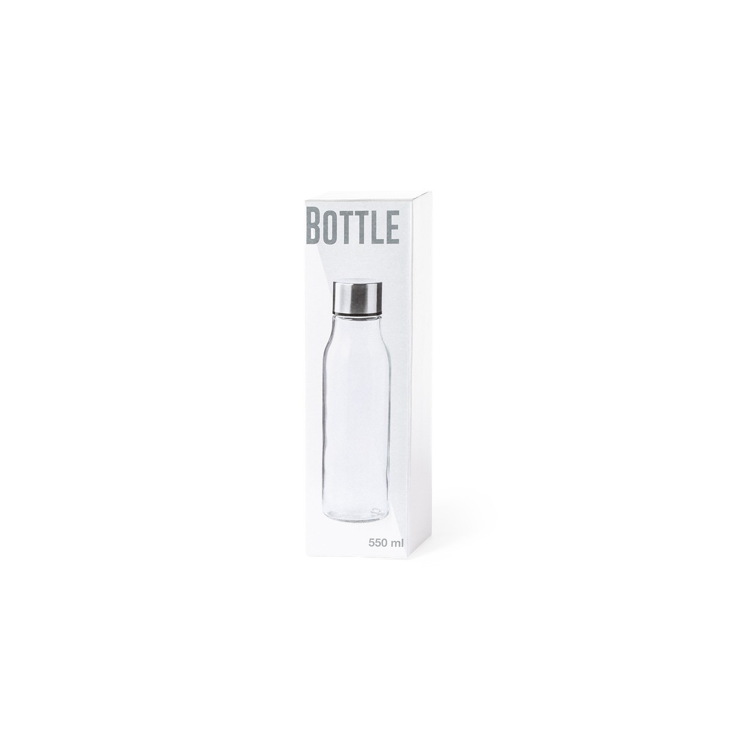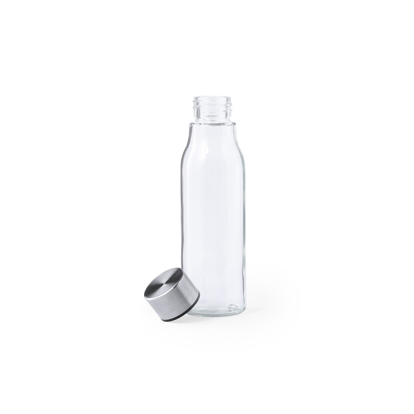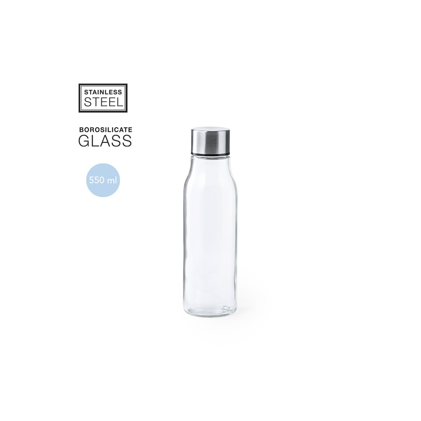 Bidón Krobus de alta calidad, 550ml. Fabricado en cristal de borosilicato, resistente y reutilizable. Tapón de acero inoxidable libre de BPA.