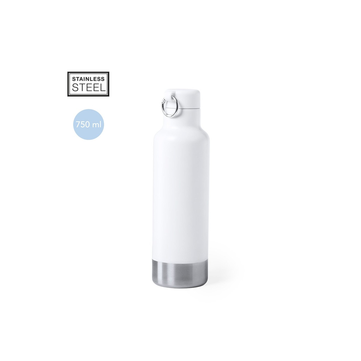 El bidón Pernal tiene capacidad de 750ml de alta calidad en acero inoxidable. Tapón a juego, anilla de transporte. Base elegante. Disponible en blanco y negro. Presentado en caja atractiva.