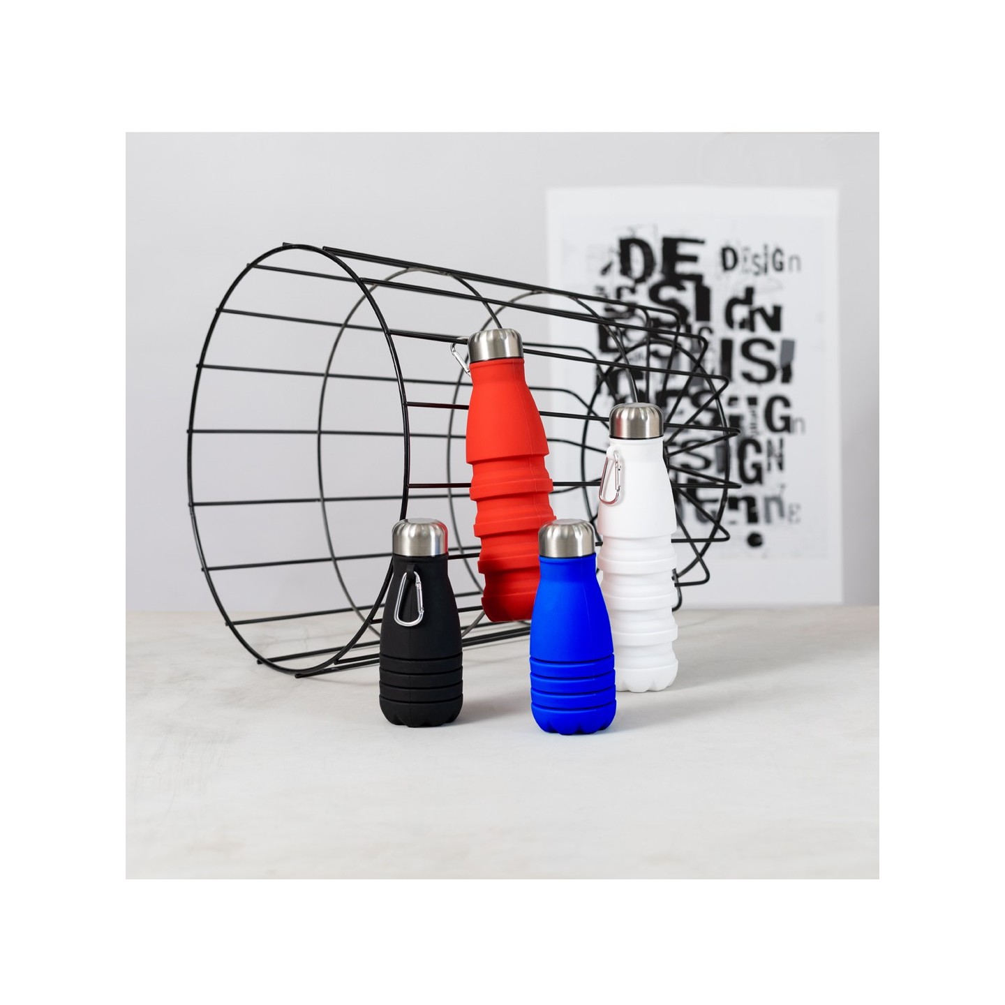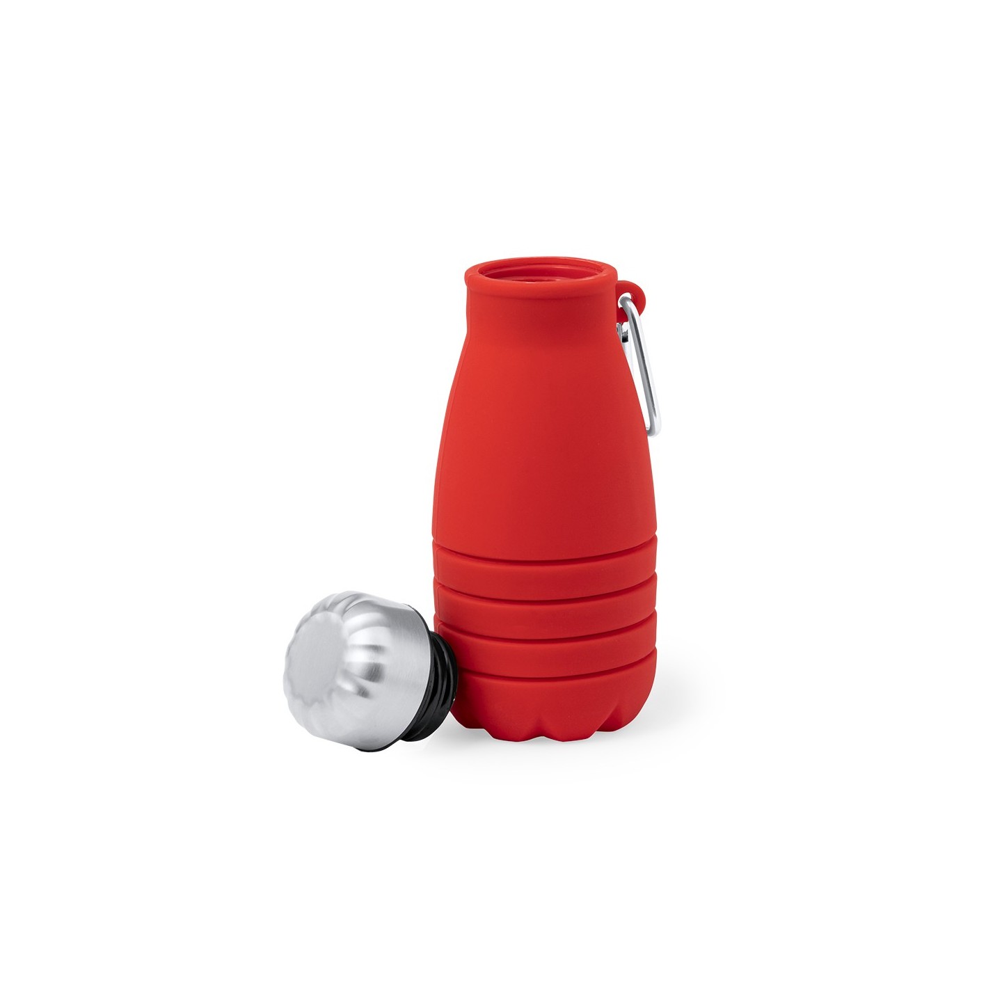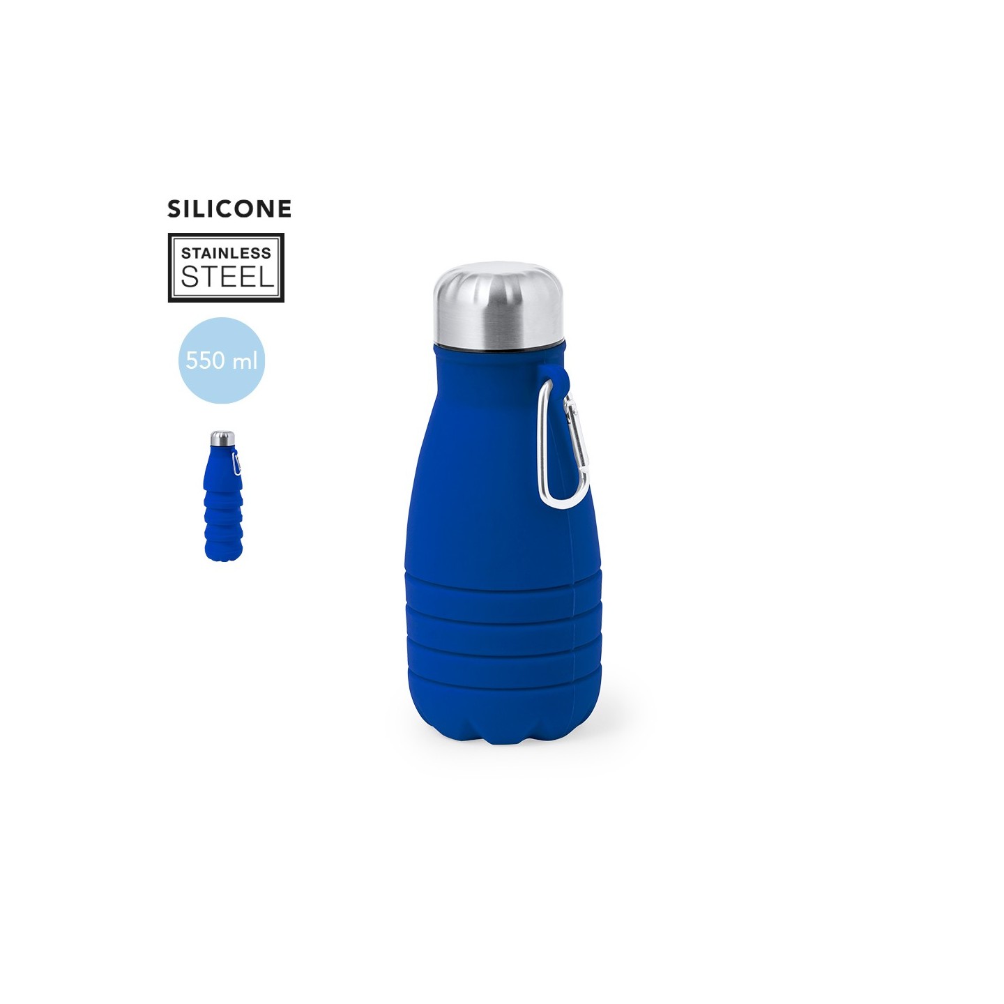 El Bidón Plegable Fael es de 550 ml de silicona segura, plegable, tapón de acero inoxidable. Práctico, ligero y libre de BPA