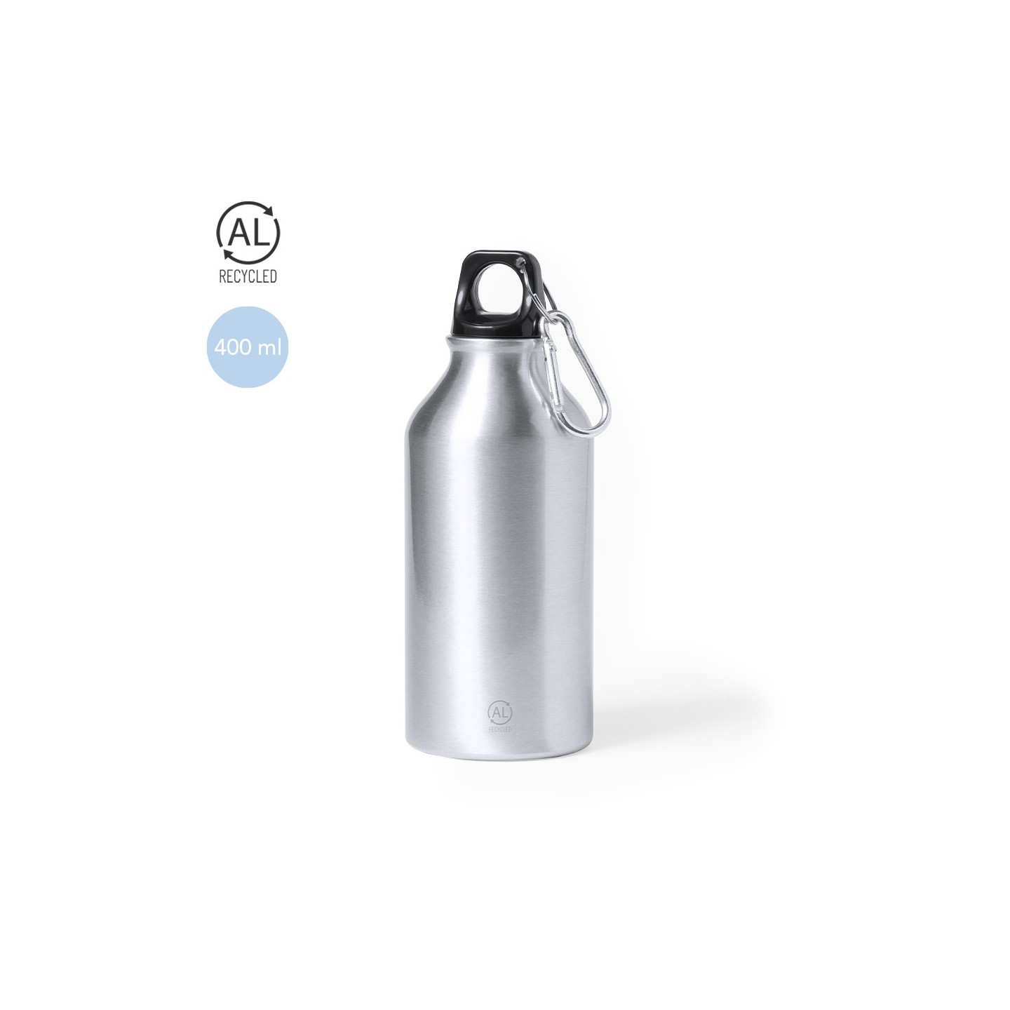 Descubre el Bidón Seirex de 400 ml, fabricado en aluminio reciclado con tapón a rosca. Libre de BPA y presentado en caja de diseño kraft.