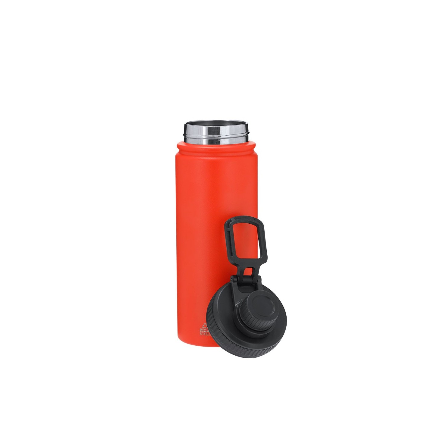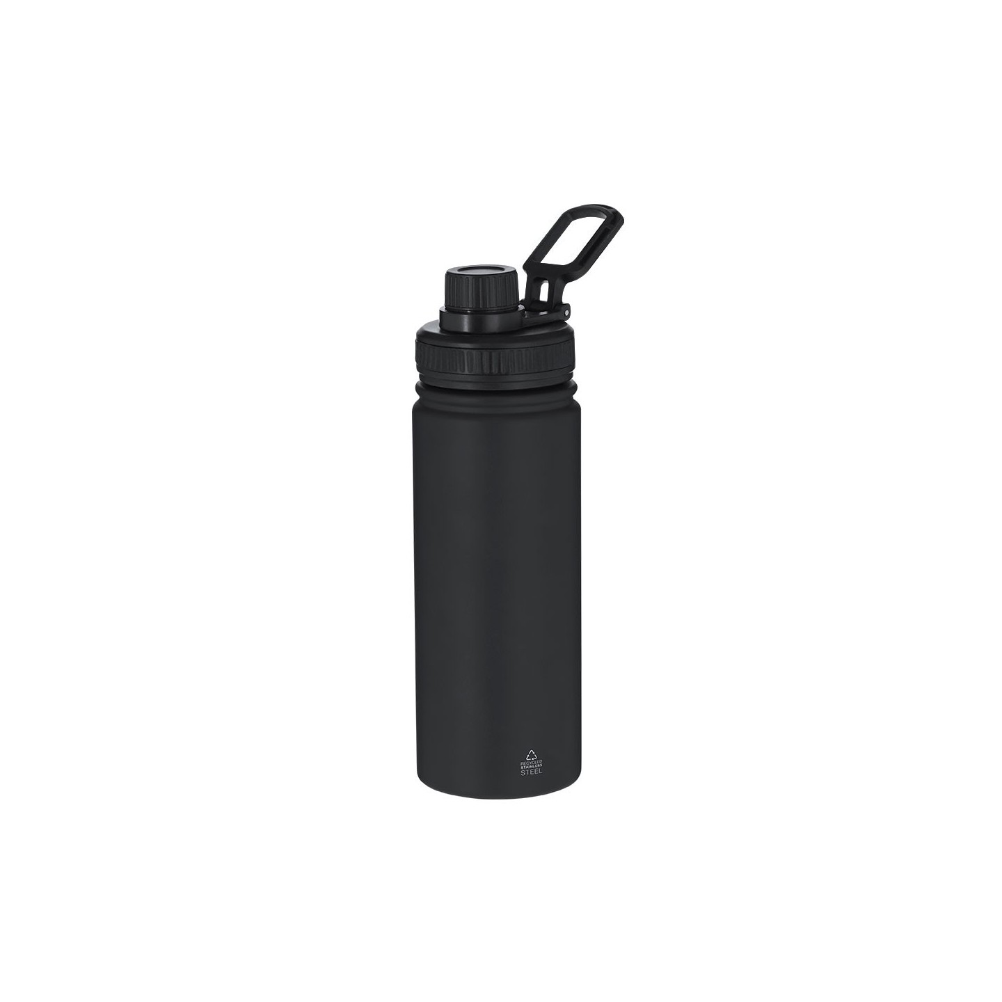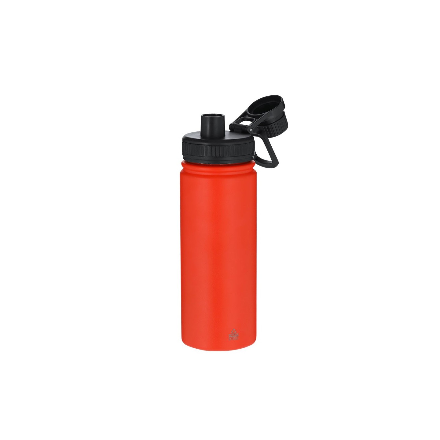 Bidón térmico de acero inoxidable reciclado de 550 ml, con tapa a rosca y asa ajustable. Mantiene el frío 15h y el calor 6h. Personalizable con tu logotipo.