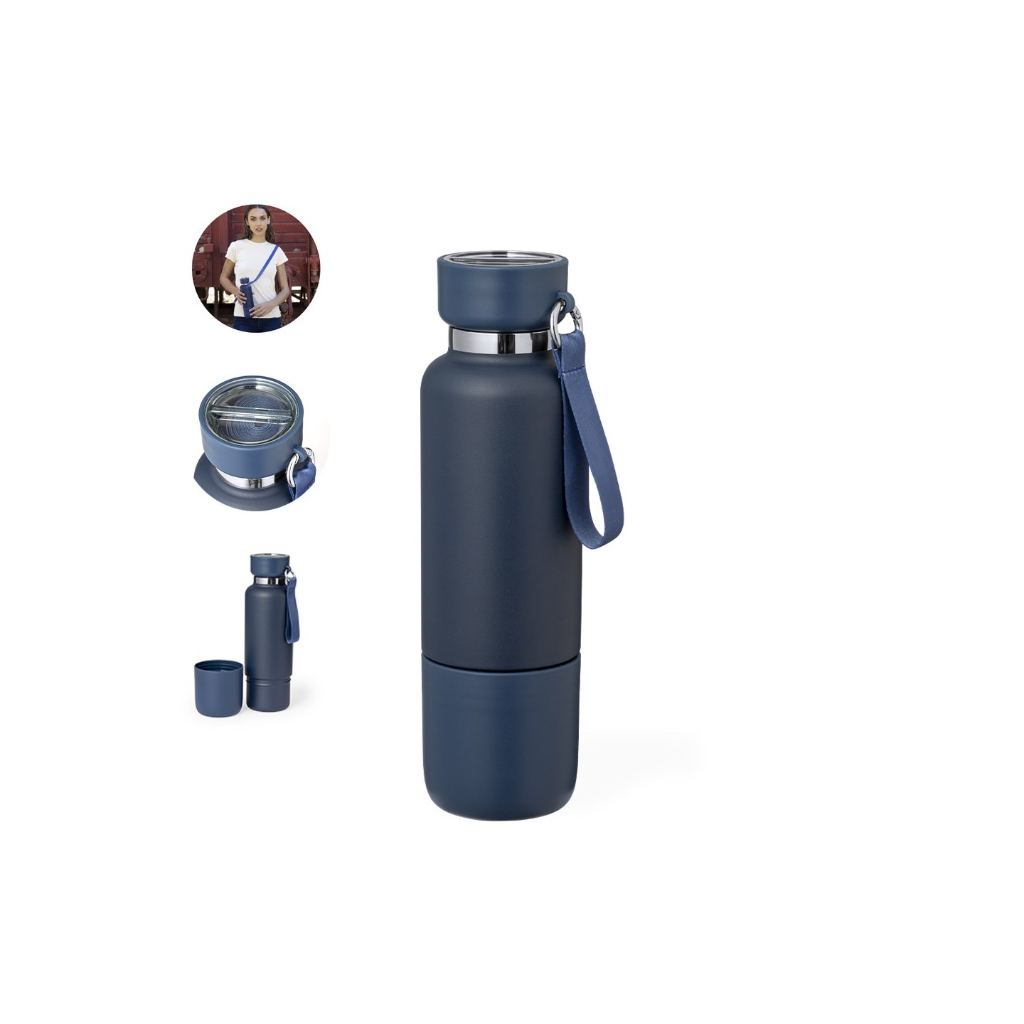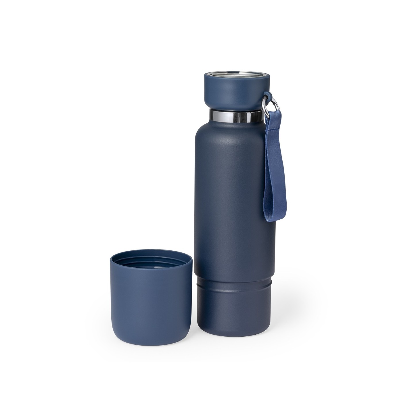 El Bidón Térmico Flautrok es de acero inoxidable, 550 ml. Con pulsera, lanyard y vaso integrado. Personalizable para destacar tu marca