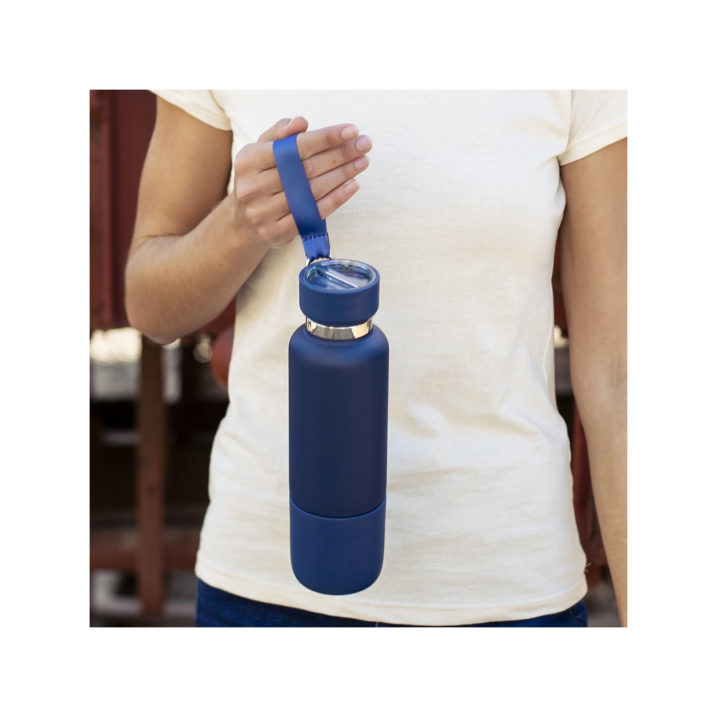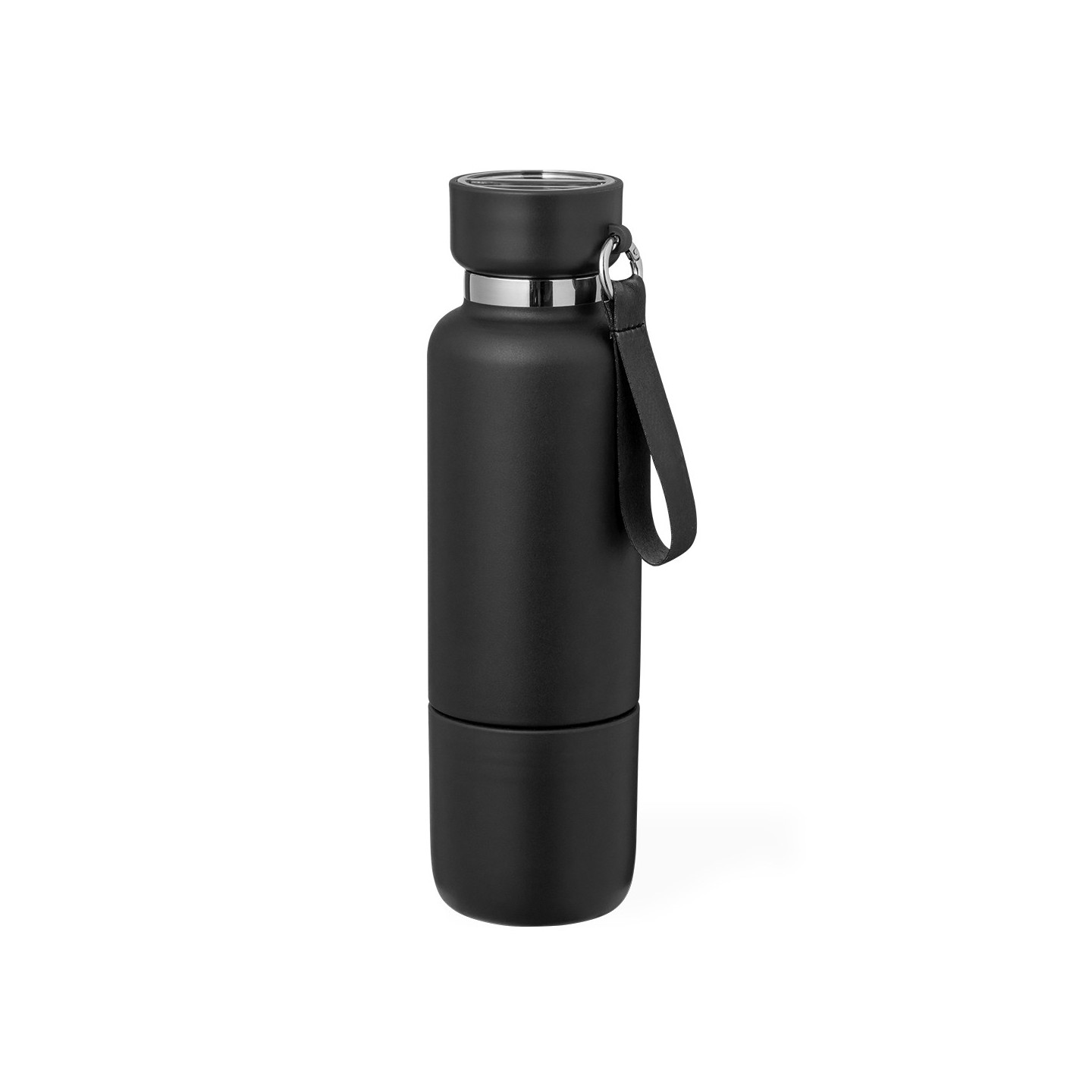 Su tapón de rosca asegura un sellado perfecto, evitando derrames y garantizando la frescura de tus bebidas. Pero lo que realmente hace único a este bidón es su ingenioso diseño, que incorpora un compartimento con dos cuerdas intercambiables: una elegante pulsera y un versátil lanyard con aro mosquetón, permitiéndote llevarlo contigo de manera cómoda y práctica, ya sea en la muñeca o colgado al cuello.